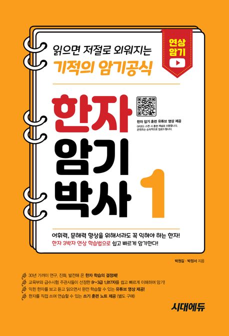 ‘읽으면 저절로 외워지는 기적의 학습법’이라 불리는 ‘한자 3박자 연상 학습법’을 이용하여 쉽고 재미있게 한자를 익힐 수 있는 도서입니다. 한자마다 생생한 어원 풀이로 한자의 어려움을 해소하였고, 필순, 활용어휘, 그밖에 상세한 설명 등으로 사전이 필요 없을 정도로 많은 정보를 담았습니다. 본서로 학습하면 교육부와 급수시험 주관사들이 선정한 1,817字를 완전 마스터할 수 있으며, 정확하고 풍부한 어휘력을 향상시켜 논술, 한국어 능력시험에도 유용합니다. 또한, 학습 효과를 높이고자 ‘한자 암기 훈련’ 영상을 유튜브에 담고 있으며, 1,817字의 모든 어원이 녹음된 mp3를 제공하고 있기 때문에 어원을 들으며 한자가 저절로 외워지는 기적의 암기 공식을 체험하며 학습할 수 있습니다.