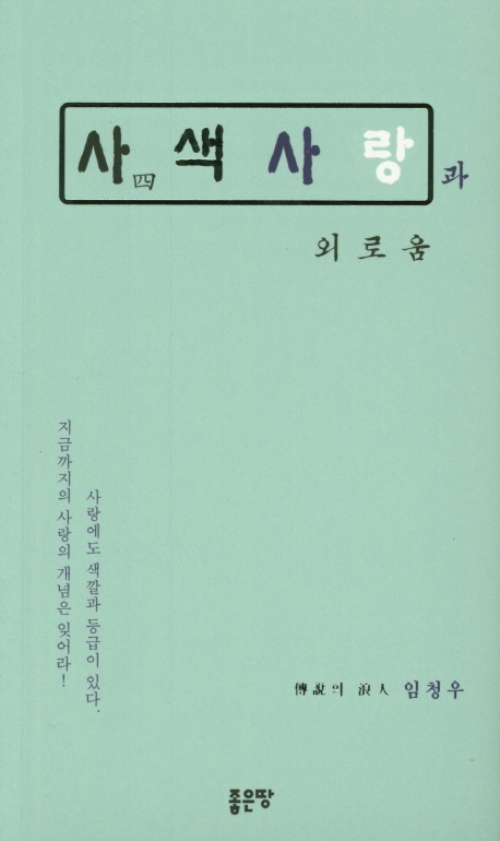 크게 보면 사랑의 종류는 네 가지이다. 에로스, 필리아, 스토르게, 아가페가 바로 그 네 가지이다. 임청우 저자의 『사색 사랑과 외로움』은 이 사랑의 네 종류를 통해 사랑에도 색깔과 등급이 있으며 사랑에 대한 새로운 개념을 써 내려갔다.
