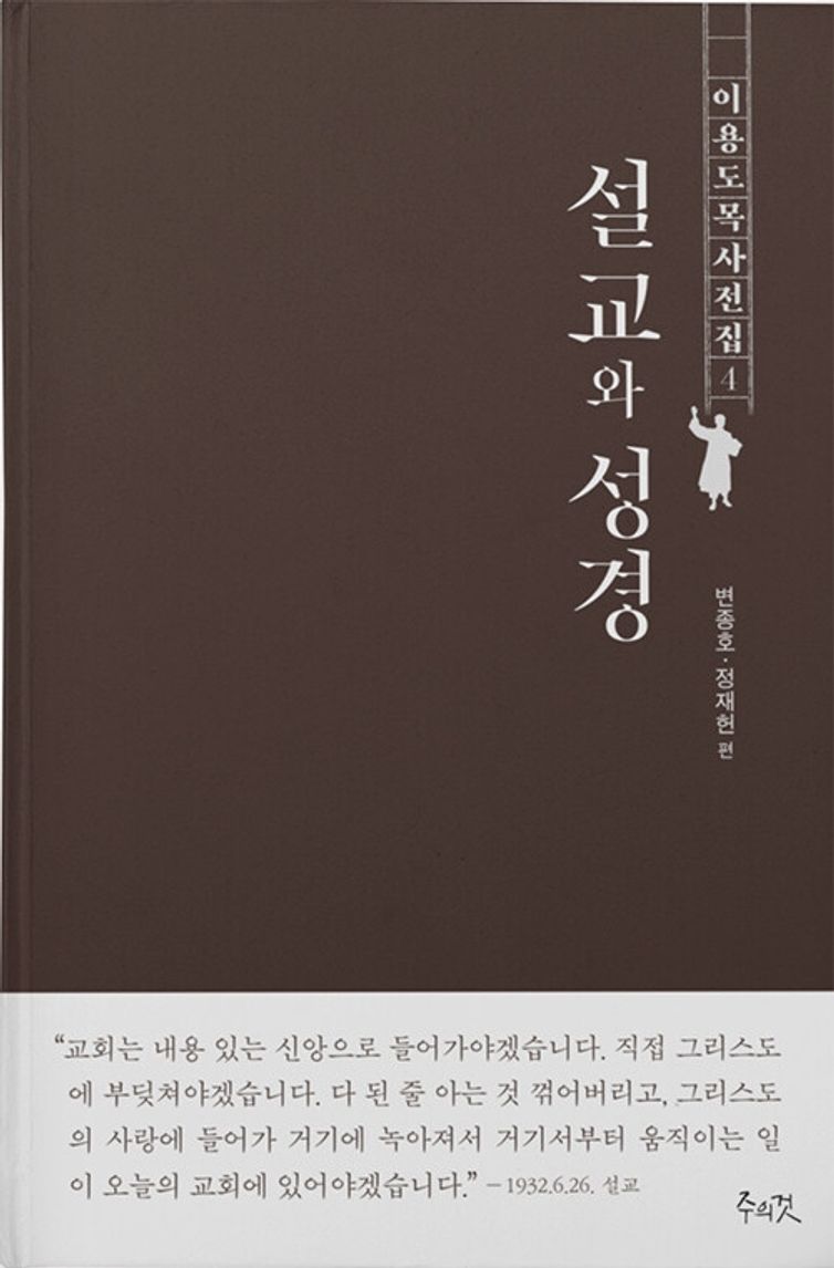 이용도 목사 전집 4권. 이용도 목사의 설교는 오늘까지 오직 수십 편이 전해지지만 수십 년의 세월을 견디어왔다. 수천수만의 설교가 일회용으로 쓰이고 사라지는 데 반해 이용도의 설교는 어떻게 그 존재를 계속 이어왔는가? 본서는 탁월한 설교자였던 이용도의 현장설교 21편과 문서설교 26편을 탐방하며 그 대답을 찾아보고자 한다.