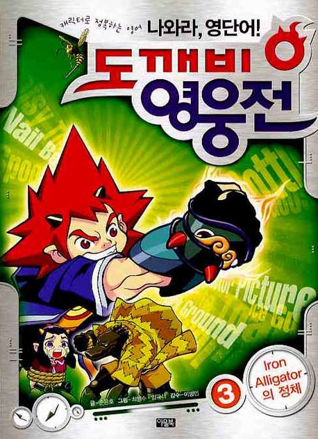 『도깨비 영웅전』시리즈 제3권《Iron Alligator의 정체》. 본 시리즈는 이미지를 통해 한자를 익히는 학습 만화「마법천자문」으로 학습 만화 시장에 새로운 바람을 몰고 왔던 아울북의 야심찬 영어 학습 만화로, 독특한 영어 단어 암기법인 '캐릭터 네이밍 학습법'을 소개한다.