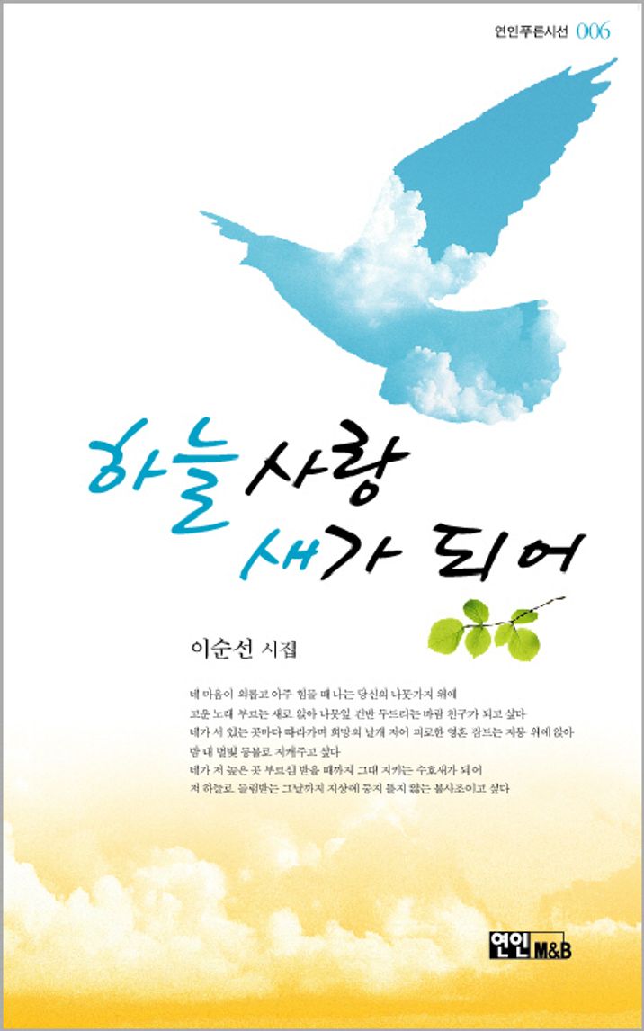 이번 이순선 시인의 『하늘사랑 새가 되어』라는 시집을 상재함에 있어 전편에 흐르는 그리움과 사랑이 우리들의 마음을 더 곱고 아름다운 단풍빛으로 물들인다. 인천 송도는 거대한 국제도시가 건설되고 있지만 시인에게는 아직도 유년 시절 어머니와 친구와 과외 선생님의 추억이 머무는 소박하고 아름다운 고향으로 나타나고 있다. 이 시인은 자신의 비워내기를 통하여 사랑이라는 아픈 벽을 무너뜨리고 바닥과 제방이 없는 강물처럼 잃어버린 시간 속에서 새로운 자아를 발견한다. 그리고 공명하는 플루트나 색소폰 소리 같은 큰 울림으로 적지 않은 독자들의 심금을 울리게 될 것이다.