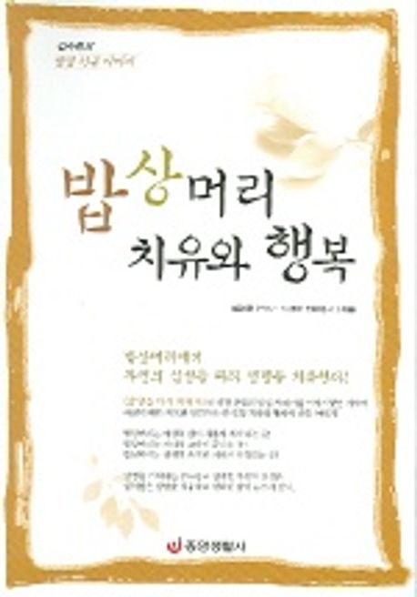 ◆ 건강한 밥상 문화 운동의 선구자 김수현의 또 하나의 역작! 약사로서 수많은 환자들과 상담하는 과정에서 약이란 결과적으로 이미 발생한 질병을 치료하기 위한 수단에 불과할 뿐이며, 그나마 약으로 나을 수 있는 병도 많지 않다는 사실을 고민하면서 나름대로 해결을 모색하던 저자는 질병의 주요 발생 원인이 우리의 그릇된 식생활 습관과 마음자세에서 비롯된다는 결론을 얻게 된다. 그런 깨달음을 얻게 된 이후 저자는 약사로서의 삶을 접고, 올바른 식생활 문화 보급 운동에 매진한다. 식생활 상담소, 뉴트리웰 센터, 바른식생활실천연대를 운영하면서 상담과 강연, 교육을 실시하는가 하면, [밥상을 다시 차리자] [바른 식생활이 나를 바꾼다] 등의 책을 발간하여 세간의 이목을 모았다. 또 SBS-TV [잘 먹고 잘 사는 법]에 출연하여 건강한 밥상 차리기 붐을 일으키는 데 결정적인 역할을 하기도 했다. 김수현은 이와 같은 바른 식생활을 통해 병원과 약국이 필요치 않은 건강한 삶을 영위하는 것에서 한 걸음 더 나아가 그의 또 다른 화두인 행복한 여성의 삶과 자녀 교육의 문제를 밥상머리에서 풀어가는 작업을 시도하며, 진정한 생명 치유를 위한 길을 모색하는 과정에서 [밥상머리 마음공부]와 [밥상머리 치유와 행복]이라는 2권의 저서를 세상에 내놓고 있다. ◆ 이 책의 주요 내용 건강한 밥상문화의 전도사임을 자임하며 관련 책을 출간하고 각종 강연과 교육을 실시하는가 하면 방송에 출연해 열정적으로 그 임무를 수행해 왔던 저자가 가슴속 깊은 곳에 담아두었던 여성과 아이들에 대한 생각, 즉 그들의 참다운 행복과 건강에 대한 이야기를 담담하게 써내려 간다. 아울러 저혈당증, 당뇨병, 알레르기, 골다공증, 수족 냉증, 만성위염, 변비, 암 등 현대의 대표적 질병들의 뿌리가 심리적 동기에서 비롯되었을 수도 있다고 전제한 뒤 그러한 질병을 근본적으로 치유하기 위한 다양한 처방들을 제시한다. -- 이 책의 첫 번째 장인 [밥상머리 깨어나는 여성의 삶]에서는 매일같이 밥을 해야 하는 여성들의 구체적인 삶 속에서 여성들이 자기 자신을 제대로 발견하고, 육체적인 어려움이나 현실적 고통을 떠나 자기 삶을 치유하며, 온전히 행복해지기 위해 무엇을 해야 하는지를 다루고 있다. 두 번째 장 [밥상머리 자녀교육]에서는 자연과 생명의 화두가 유행처럼 퍼져가는 시대에 진정으로 아이의 생명력을 보살피는 것은 단지 엄마의 막연한 관념과 의지로서가 아니라 아이의 눈으로, 자유로움의 눈으로 보아야 한다는 점을 역설하고 있다. 부모의 왜곡된 시각과 욕심은 자칫 아이들의 생명을 다치게 할 수 있음을 명심하고 밥상머리에서 이루어져야 할 자녀교육을 소홀히 해서는 안 된다는 점을 강조한다. 세 번째 장 [질병은 감사의 메시지]에서는 질병에 대한 우리의 잘못된 생각들을 구체적으로 짚어보고, 인간의 생명력, 자연치유력을 인정하지 않으며, 스스로 돕고 치료할 수 있는 희망적 메시지를 차단하는 현대 의학적 사고의 극복과 인식의 전환을 통해 새로운 생명의 관점에서 질병을 이해하고 근본적 치유의 길로 다가서기 위해 우리가 해야 할 일들을 소개하고 있다.