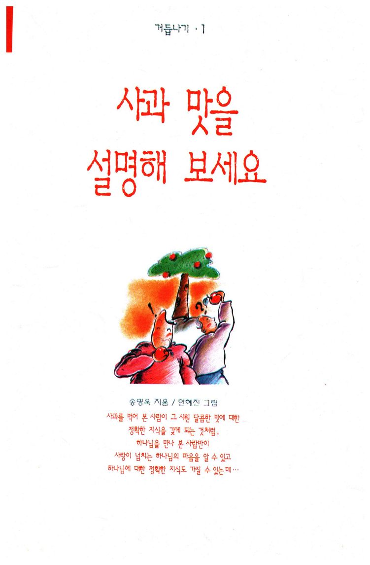 저자는 보이지 않은 하나님에 대한 신앙을 사과맛에 비유하며 신앙생활에 대한 기준 및 올바른 틀을 제시하고 있다