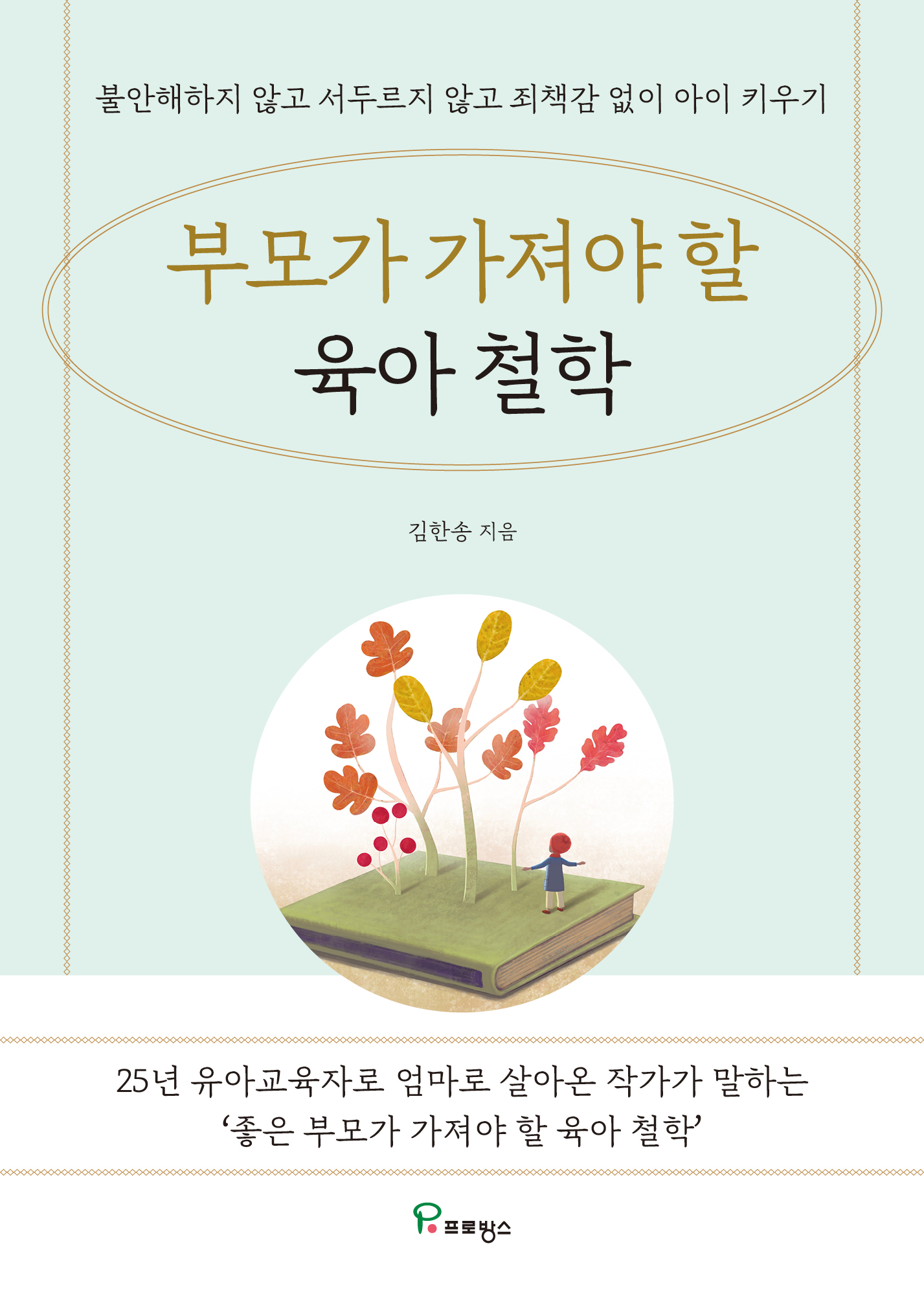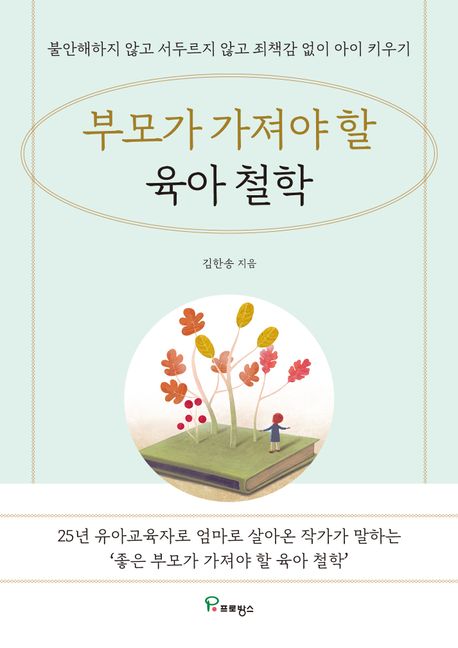 모든 부모의 마음은 자녀가 행복하고 건강하게 살아가기를 원한다. 부모의 교육철학에 따라 자녀의 성장은 확연히 다르다. 자녀는 부모의 걸음걸이나 습관 및 행동뿐 아니라 사소한 말투 하나까지 닮아간다. 어린이집을 운영하며 만난 부모들은 옆집 아이와 비교하며 끝없는 불안감에 시달리고 있었다. 육아에 대한 확고한 철학 없이 날마다 흔들리는 부모들과 우리 아이만 뒤처지는 듯한 조급한 마음을 안고 있는 부모들을 만나면서 부모교육의 필요성을 절실히 느꼈다. 자녀 양육에 있어 이유 없이 ‘불안’하고, 조바심으로 ‘서두르고’ 있고, 부모 잘못이 큰 것 같은 ‘죄책감’에 시달리는 부모들에게 한 줄기 빛이 되어줄 지침서이다.