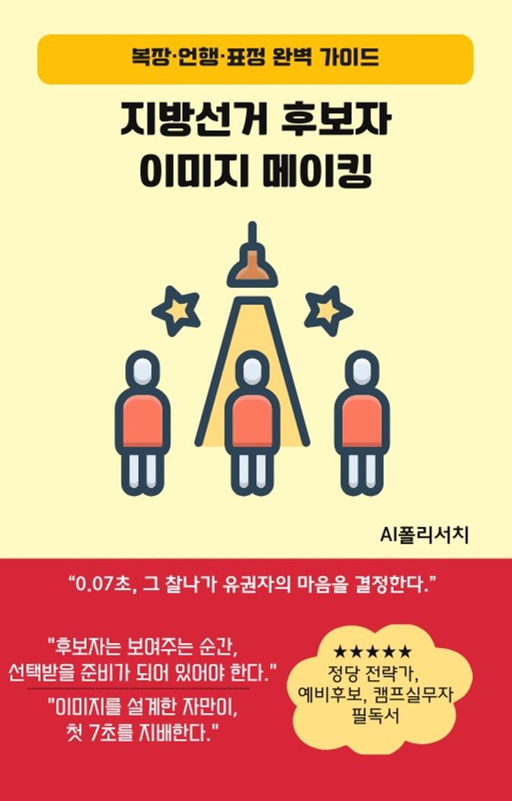 선거에서 유권자의 선택은 공약 이전에 이미지에서 시작된다. 후보자는 0.07초의 찰나에 첫인상을 남기고, 그 인상이 곧 투표 결정의 기반이 된다. 복장, 자세, 표정, 목소리, 말투, 태도 하나하나가 유권자의 무의식에 영향을 미친다. 이 책은 정치 후보자와 캠프 실무자들이 첫 만남에서 신뢰를 얻고 기억에 남는 인물을 설계할 수 있도록 돕는다. 유세 현장 에티켓부터 퍼스널 브랜드 구축법, 선거 이후 이미지 관리까지 일관된 메시지와 진정성을 유지하는 기술을 구체적으로 안내한다. 이미지 메이킹은 단순한 겉치장이 아니라 사람의 마음을 여는 전략적 설계임을 강조하며, 실제 사례와 실전 팁으로 구성된 이 책은 후보자 이미지의 기획부터 완성까지 전 과정을 안내하는 실전 교과서다.