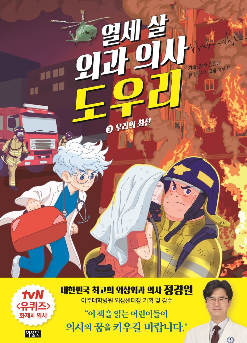 지금껏 없었던 새로운 영역의 의학 동화 시리즈 〈열세 살 외과 의사 도우리〉. 이 책은 어린이들에게 다소 생소할 수 있는 ‘외상 센터’와 ‘닥터 헬기’를 소재로 삼아, 긴박감 넘치는 의료 현장을 생생하게 그려냅니다. 외상 센터는 중증 외상 환자를 신속하게 치료하기 위해 존재하는 곳으로, 이곳의 의료진들은 1분 1초가 급한 환자들을 위해 닥터 헬기를 타고 직접 사고 현장으로 출동합니다. 그래서 이 이야기는 환자가 외상 센터에 도착하기 전부터 시작됩니다. 갑작스러운 사고를 마주하고, 닥터 헬기를 타고 현장으로 날아가 환자를 구조하며, 다시 헬기를 타고 돌아와 생명을 살려내기까지의 숨 가쁘게 이어지는 모든 과정이 담겨 있습니다. 어린이 독자들은 병원 밖에서 펼쳐지는 더 새롭고, 더 넓은 의학의 세계를 경험하게 될 것입니다.