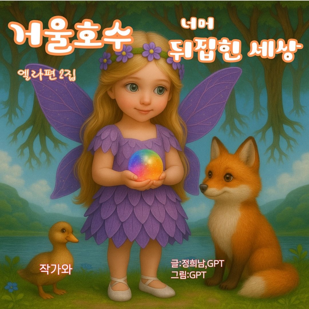 .빛의 요정 엘라는 우연히 모든 것을 반대로 비추는 신비한 '거울 호수'를 발견하고, 그 안으로 들어가 모든 것이 거꾸로 된 세상에 도착합니다. 그곳에서는 나무가 하늘에서 자라고, 동물들은 말을 거꾸로 하며, 느릴수록 더 멀리 가야 하는 이상한 규칙이 있었죠.