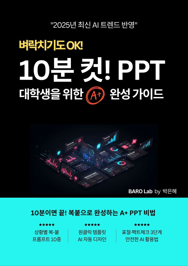 과제 제출일이 코앞인데 PPT를 시작도 못했다면? 단 10분 만에 A+ 수준의 발표 자료를 완성하는 방법을 알려드립니다.