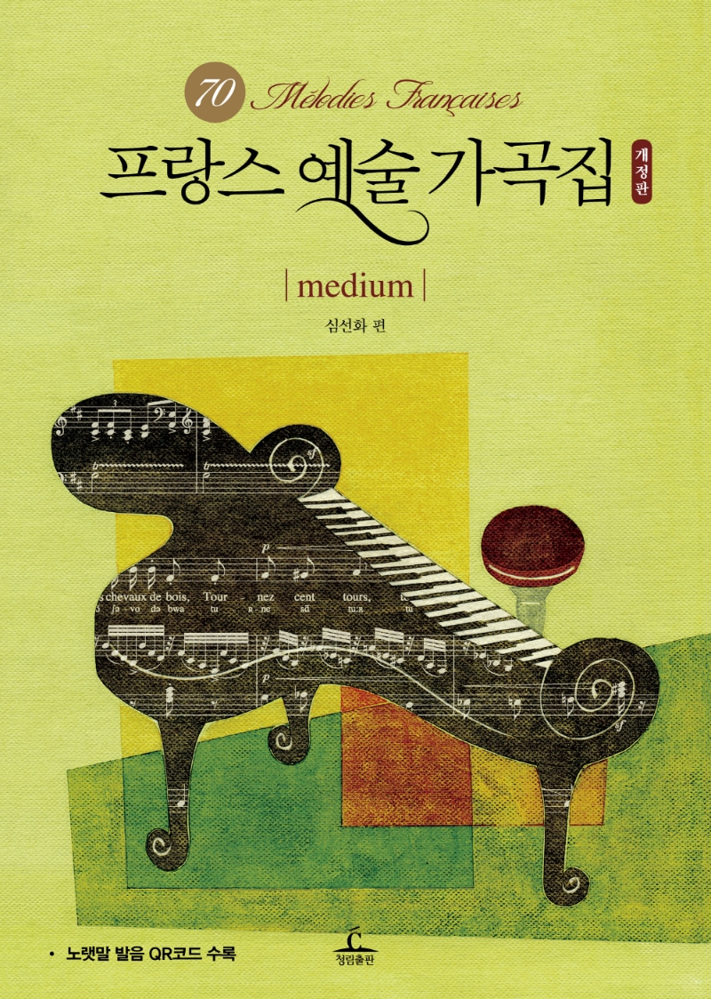 이 책은 아름답고 음악적인 특징을 가진 총 70개의 악보를 수록한 프랑스 예술 가곡집이다. 프랑스가곡 전문가인 심선화 교수가 편저를 맡았으며, 악보의 책임 교정까지 꼼꼼히 반영하여 프랑스 예술 가곡을 애호하는 성악가들을 위해 꼭 필요한 책이다. 각 악보에 프랑스 발음기호를 명기해두었으며, 이번에 meidium이 새롭게 개정되면서 노랫말 발음을 QR코드로 수록하여 프랑스어의 아름다운 발음을 익힐 수 있도록 하였다.
