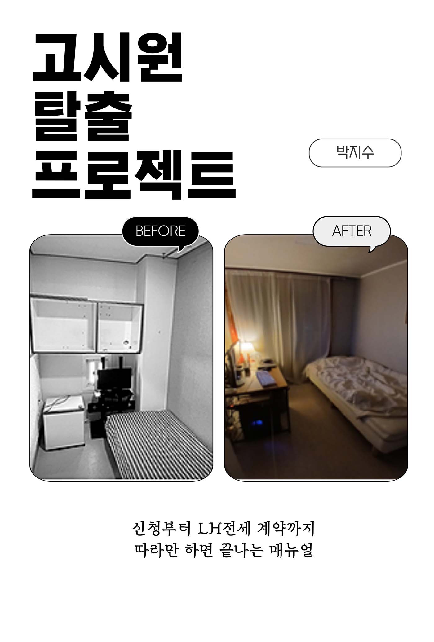 우연히 알게 된 ‘고시원 3개월 전형’을 발판 삼아, 단 3개월 만에 안정적인 전세집으로 옮겨갈 수 있었습니다.