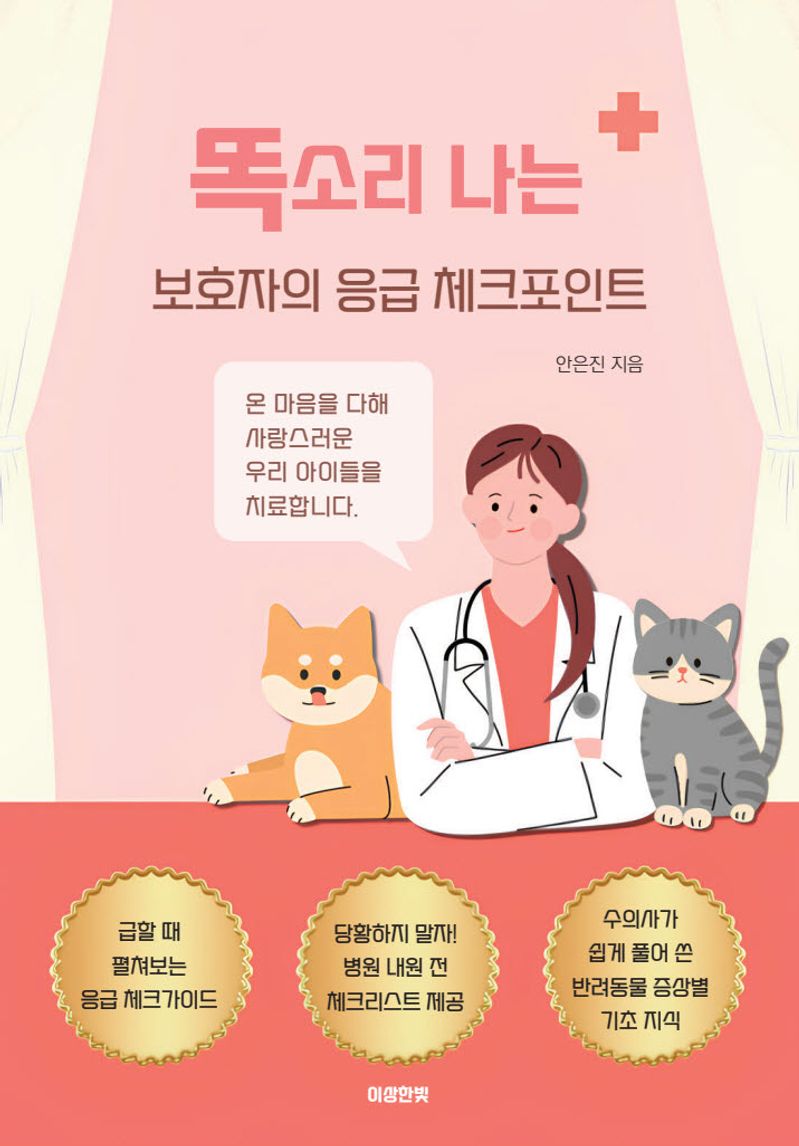 이 책은 현장에서 마주한 수많은 사례를 바탕으로, 보호자가 집에서 바로 확인할 수 있는 증상별 응급 체크리스트를 담았습니다. 각 증상별로 긴급도, 원인, 병원에 가기 전 확인할 사항, 검사와 치료 과정까지 한눈에 알 수 있도록 구성했어요. 혼란스러운 순간, 보호자의 빠른 판단을 도와주는 책. 걱정이 막연한 불안으로 끝나지 않도록, 이 책이 당신 곁에서 든든한 안내서가 되어줄게요.