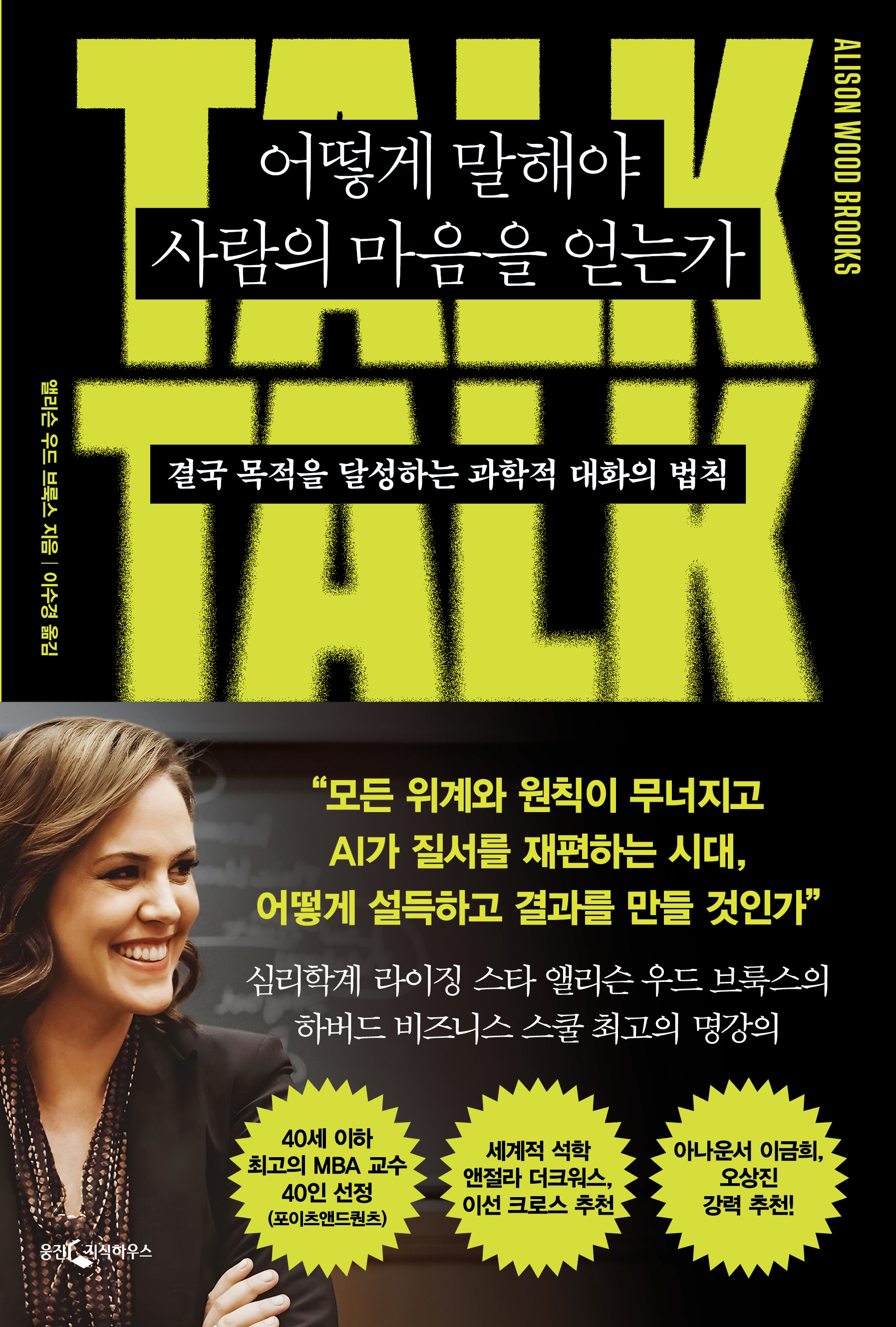 앨리슨 우드 브룩스는 칸트의 대화 철학부터 행동과학, 심리학, 경영학에 이르기까지 말하기의 과학을 전방위적으로 탐구하며, 설득과 협상 및 일상 대화를 성공적으로 이끄는 ‘TALK 원칙’을 소개한다. TALK 원칙은 저자가 수년간 축적한 연구 데이터를 기반으로 비즈니스와 일상 대화를 과학적으로 분석해 마련한, 실질적이고 검증된 지침이다.