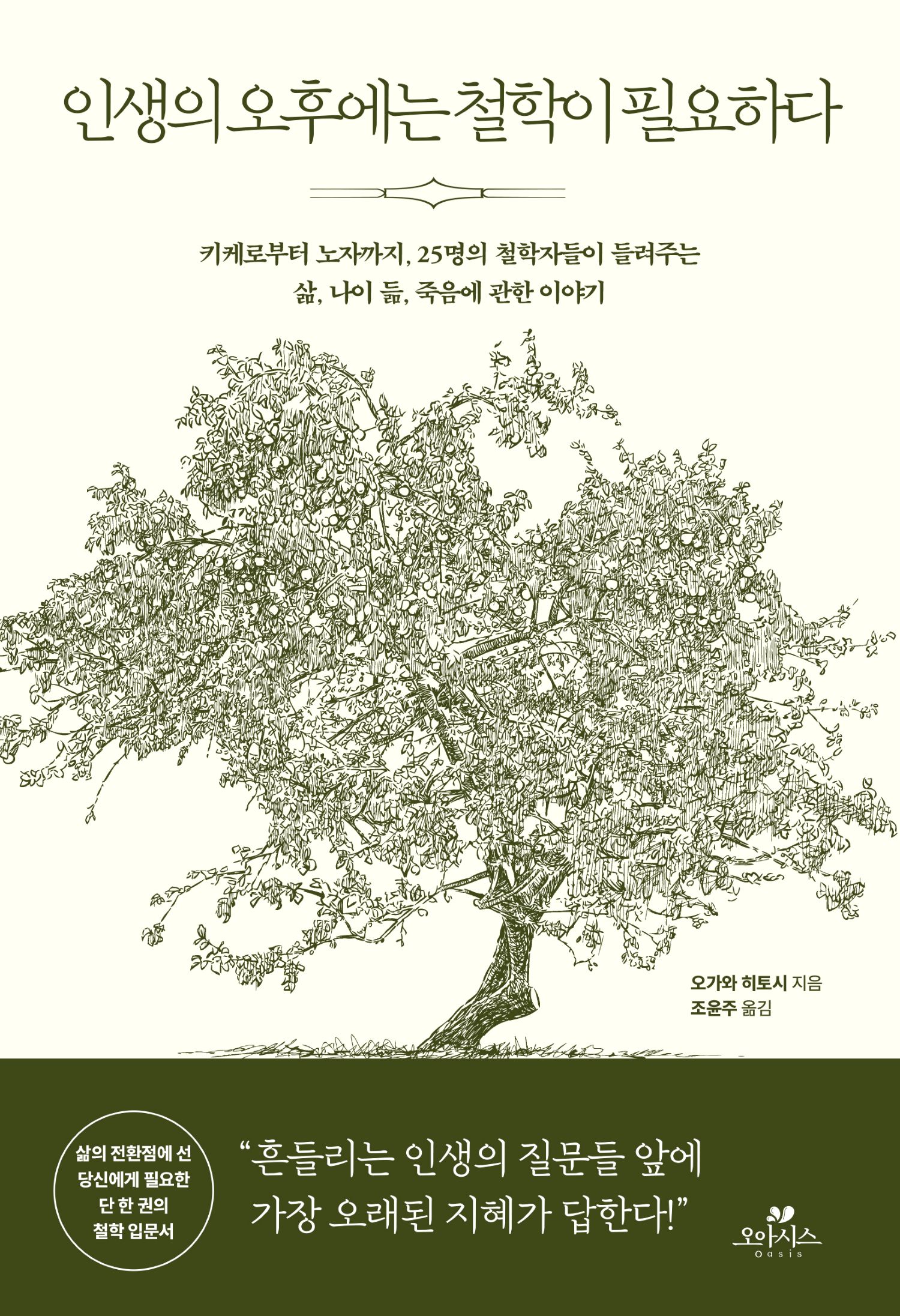 나이가 들수록 우리는 불안해진다. 세월이 흐른 만큼 더욱 단단한 사람이 되어가기를 기대함과 달리 우리는 여전히 작은 일에도 폭풍처럼 흔들린다. 지금 내가 잘 살아가고 있는지, 내 곁의 사람들은 왜 자꾸만 떠나가는지, 은퇴 후에는 어떻게 먹고살아야 할지…. 기나긴 인생이기에, 우리는 지금껏 살아온 시간보다 앞으로 살아갈 날들에만 집중하려 한다. 그러나 지금 만일 당신이 해가 저물어가는 인생의 오후, 즉 삶의 전환점에 서 있다면 이제는 지나온 나날을 돌아보고 현재를 점검하며 앞으로 나아갈 방향을 다시금 고쳐잡는 시간이 다가왔음을 의미한다. 지혜롭고 의미 있는 인생은 우리를 끝도 없이 앞으로 이끄는 큰 목표가 아니라 아주 작은 성찰에서 시작하기 때문이다. 지금껏 세월을 거듭하며 쌓아온 인간의 가장 오래된 지혜인 철학은 이때 우리가 놓쳐서는 안 될 중요한 이야기를 들려준다.