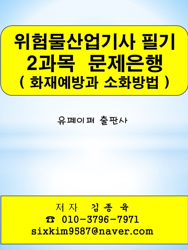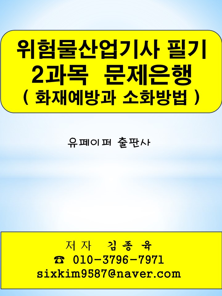 "위험물산업기사 필기 2과목(화재예방과 소화방법) 문제은행"은 저자가 수험생 입장에서 단기간에 문제를 풀고, 합격에 도움이 될 수 있도록 구성된 문제은행식 저서입니다.