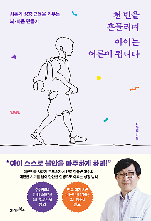 학교 수업에 학원 숙제, 수행평가와 시험까지, 무엇 하나 열심히 하지 않는 게 없는 요즘 아이들이지만, 어째선지 열심히 하면 할수록 불안은 짙어진다. 잘하고 싶은 마음에 늘 쫓기고, 부족한 건 내 탓인 것만 같아 자책하기도 한다. 상처투성이 우리 아이들의 마음을 위로하고 싶은 대한민국의 부모님들을 위해, 국내 최고 부모교육 멘토이자 서울대병원 소아청소년정신과 전문의 김붕년 교수가 신작 『천 번을 흔들리며 아이는 어른이 됩니다』를 출간했다.