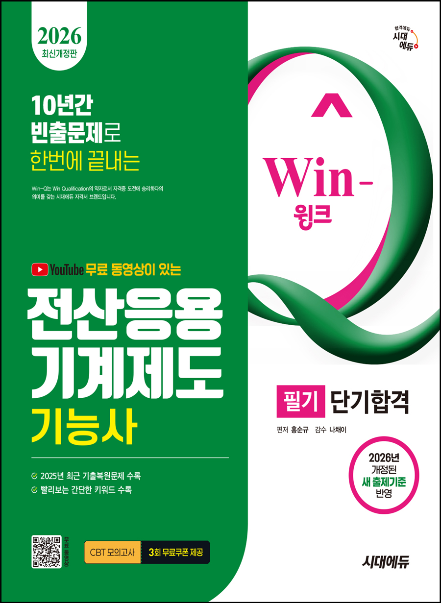 2026 시대에듀 무료 동영상이 있는 Win-Q 전산응용기계제도기능사 필기 단기합격