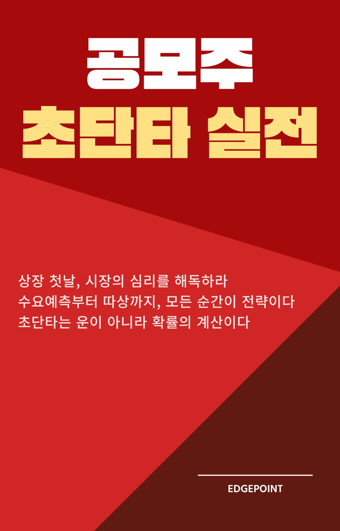 EdgePoint는 국내 IPO와 단기 매매 구조를 연구하는 트레이딩·리서치 팀으로, 체결·호가 데이터 판독, 리스크 규칙화, 실행 루틴 설계를 통해 “작은 증분의 누적”을 지향한다. 본서는 실전에서 축적한 규율을 초단타 입문자도 바로 적용할 수 있도록 정리했다.