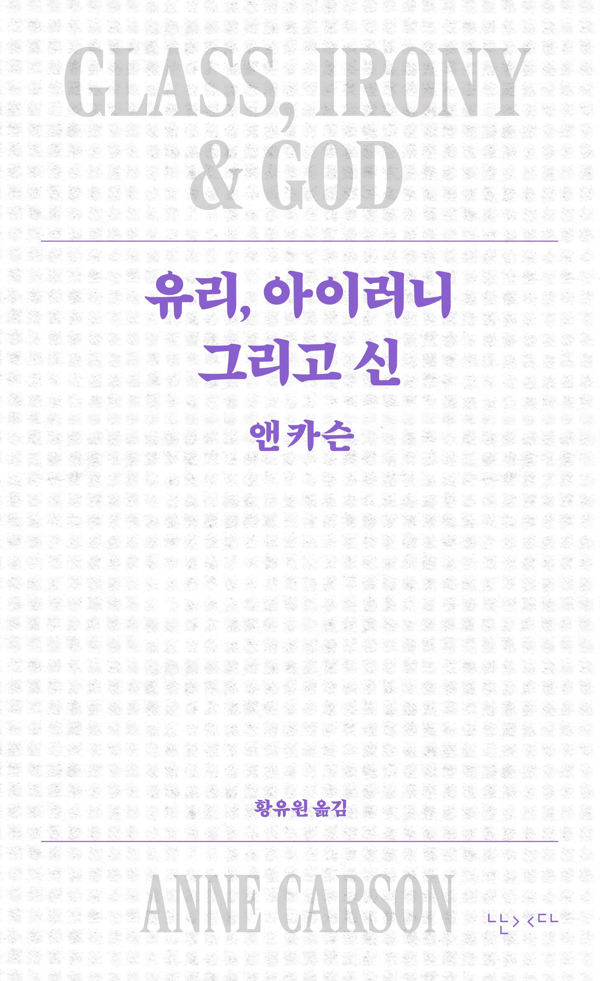 앤 카슨은 감정으로 일종의 수학을 하듯 대담한 방정식, 순환하는 이미지의 집합과 부분집합으로 글을 쓴다. 『유리, 아이러니 그리고 신』은 그 대담함과 자유로움에 더해 주제적 예리함과 형식적 정교함까지 갖추고 있다. 앤 카슨은 자칫 현학적으로 흐를 수도 있는 지적인 주제에 감각적인 서사를 더하여 결국에는 읽는 이의 마음을 아주 깊숙이, 그것도 더없이 ‘시적으로’ 파고든다. 이번 책에서는 이러한 작품의 매력이 한국 독자에게도 최대한 전달될 수 있게끔, 함께 알아두면 좋을 몇 가지 사실을 각주로 달아놓았다. 많은 독자에게 『유리, 아이러니 그리고 신』이 앤 카슨 작품세계에 흠뻑 빠져드는 값진 만남의 기회가 되기를 소망한다.