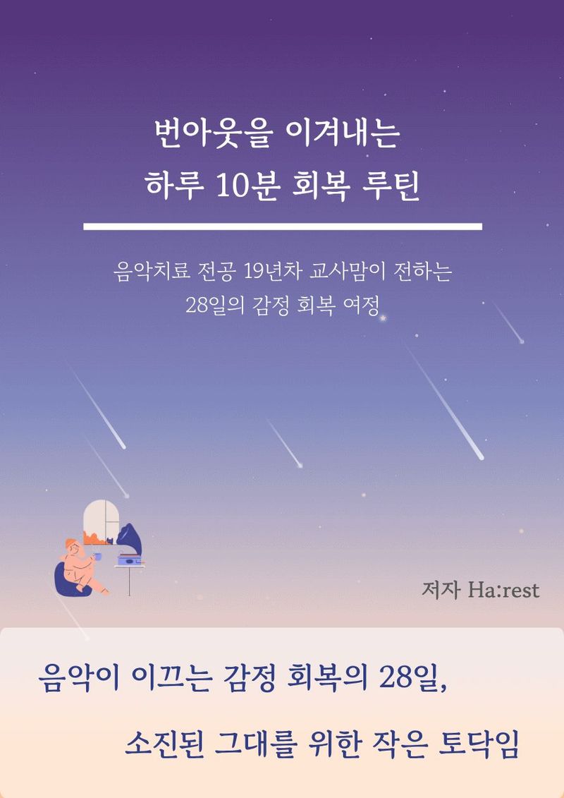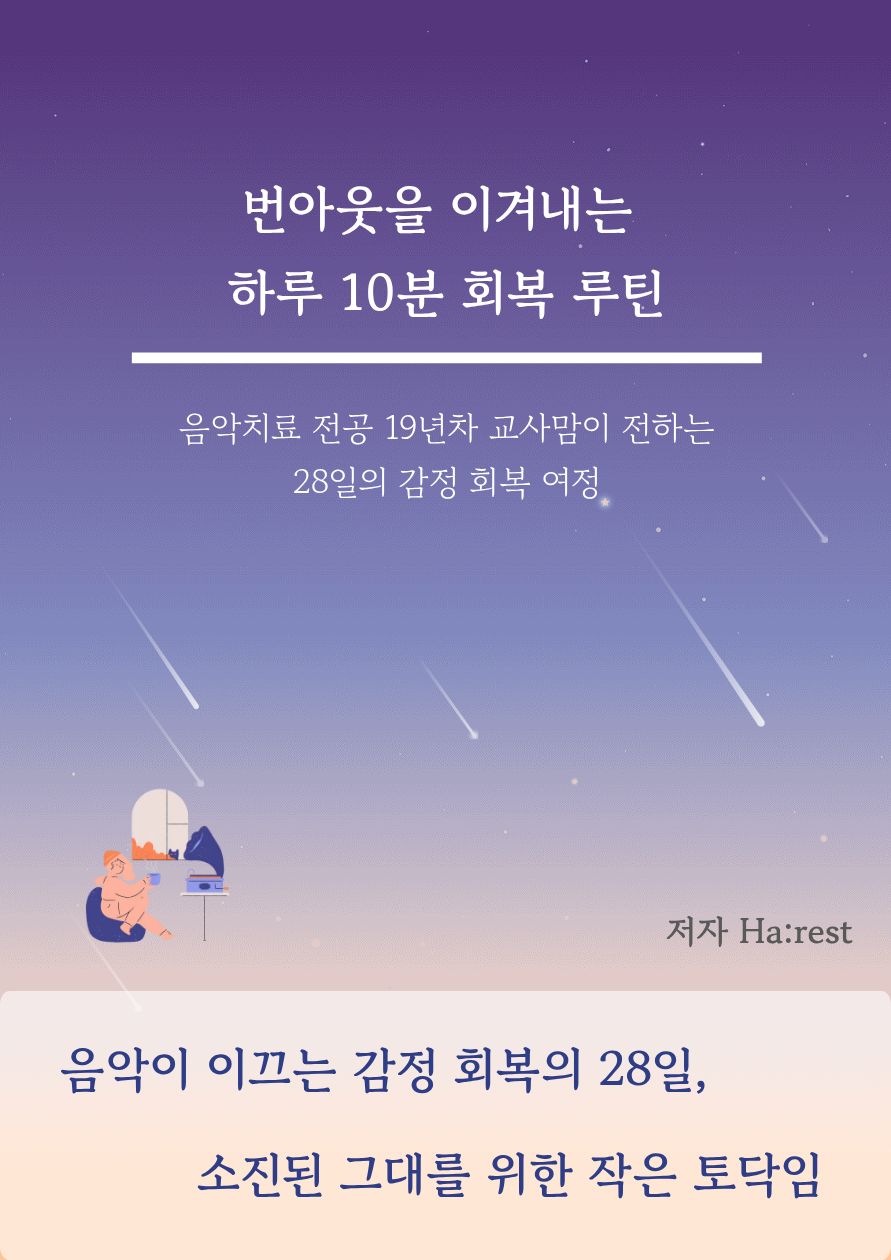 이 책은 19년 차 특수교사이자 음악치료 전공자가 전하는 28일간의 감정 회복 여정입니다.