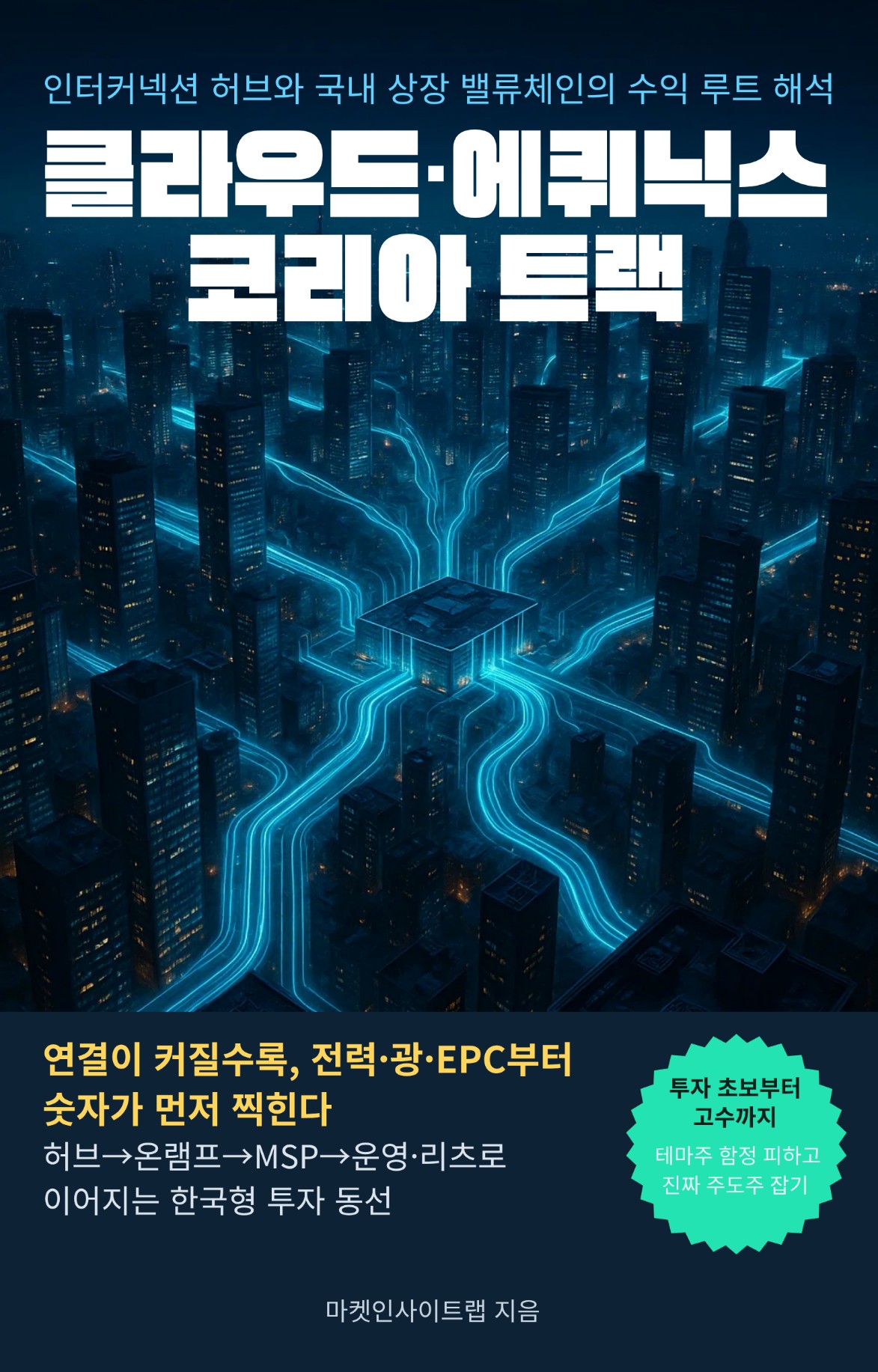 하이퍼스케일의 시간표를 알면 매출이 어디에 먼저 찍히는지가 보인다. 이 책은 서울 인터커넥션 허브의 확장과 국내 착공 뉴스를 전력·광통신·EPC·냉각·운영 소프트웨어의 발주 순서로 번역해 투자자가 바로 사용할 수 있는 지도로 제시한다. 초고압 변압기와 HV/HVDC 케이블이 여는 선행 수주, 400G·800G 백본과 DCI가 만드는 중간 모멘텀, 버스덕트·지능형 PDU·액체냉각 전환이 완성하는 효율, DCIM·보안·관제가 잠그는 반복 매출, 완공 후 리츠 편입으로 이어지는 배당 흐름까지 하나의 타임라인에 꿰었다. 독자는 허브 인접 레퍼런스, 납기와 생산능력, 패키지 제안력, 정책 호환성 같은 체크포인트로 리스크를 관리하고, 사건 발생 시 가중치를 조정하는 방법을 익힌다. 글로벌 브랜드에 시선을 빼앗기지 않고 현장에서 현금을 창출하는 국내 상장 협력망을 추적하는 것, 그것이 바로 이 책이 제안하는 실전 전략이다. 연결이 커질수록 먼저, 크게, 오래 숫자가 찍히는 자리로 독자를 안내한다.