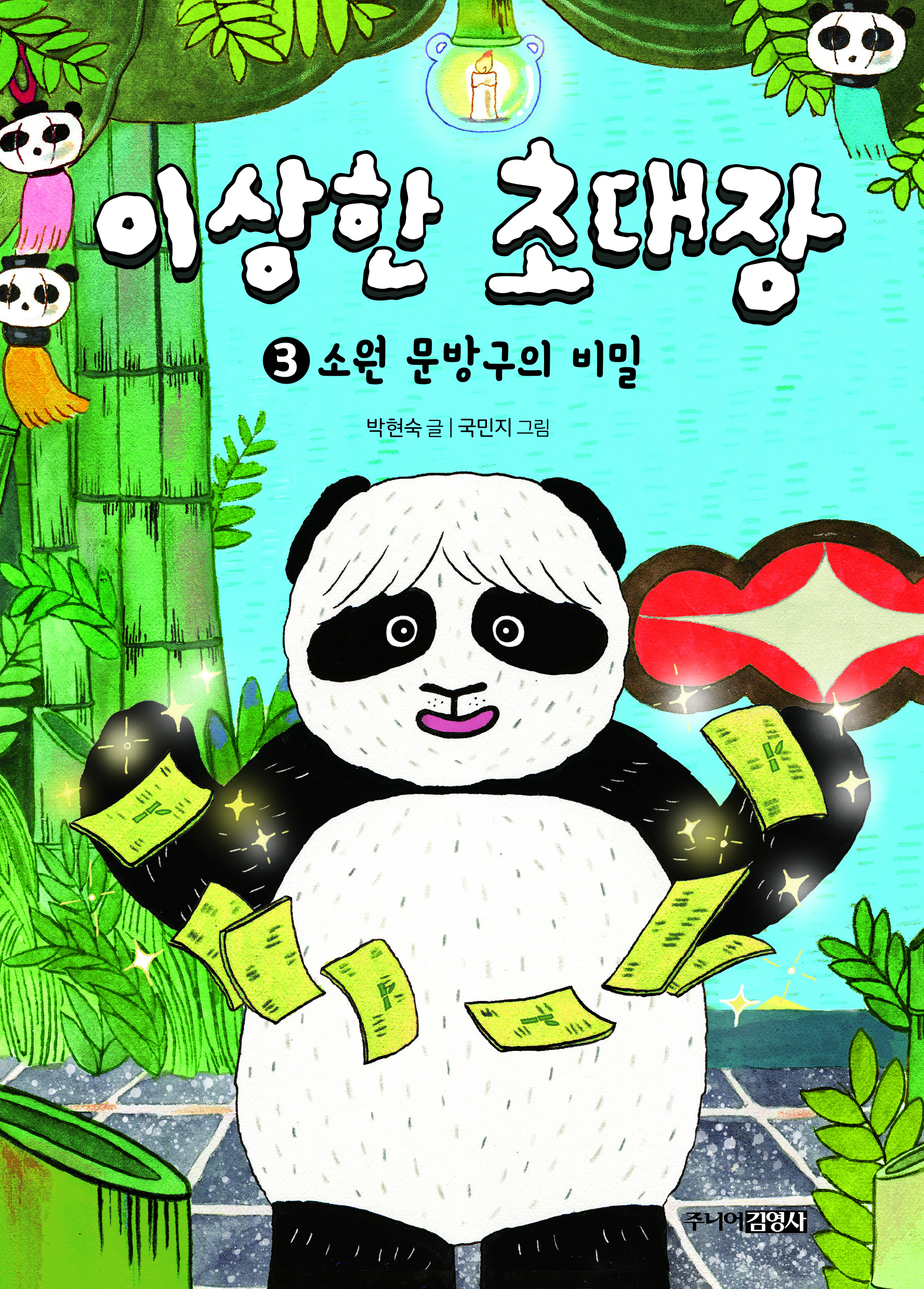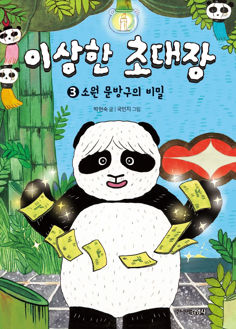 들고 오는 이야기마다 아이들의 취향을 저격하는 박현숙 작가의 소원 판타지 시리즈 〈이상한 초대장〉은 아이들이 간절히 바라는 ‘소원’을 통해 웃음과 감동과 교훈을 선사한다. 1권에서는 한때는 간절했지만 시간이 흘러 시시하게 느껴지는 소원을, 2권에서는 친구를 시기하는 마음으로 적은 소원을, 3권에서는 어린 마음에 섣불리 바랐던 소원을 다루며 아이들이 존중과 배려를 스스로 깨닫고 성장하는 모습을 담았다. 이에 더해 권마다 소원을 들어주기 위해 등장하는 멸종 위기종 동물 캐릭터들은 사라져가는 숲과 빙하, 우리 주변의 환경에 대해 한번 더 생각해 볼 수 있는 메시지를 던진다. 여기에 국민지 작가의 발랄하고 사랑스러운 그림이 이야기의 맛을 한껏 살리고 생기를 불어 넣었다. 〈이상한 초대장〉 시리즈는 어린이들이 가질 수 있는 고민과 간절한 마음들을 소원으로 엮어 새로운 이야기로 다시 찾아올 것이다.