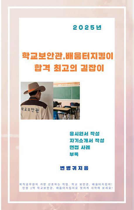 필자는 이 책을 통해서 보안관, 배움터 지킴이 시험을 준비한다면 충분히 합격할 수 있다고 생각합니다. 이 시험을 준비하는 모든 분들에게 합격을 기원합니다.