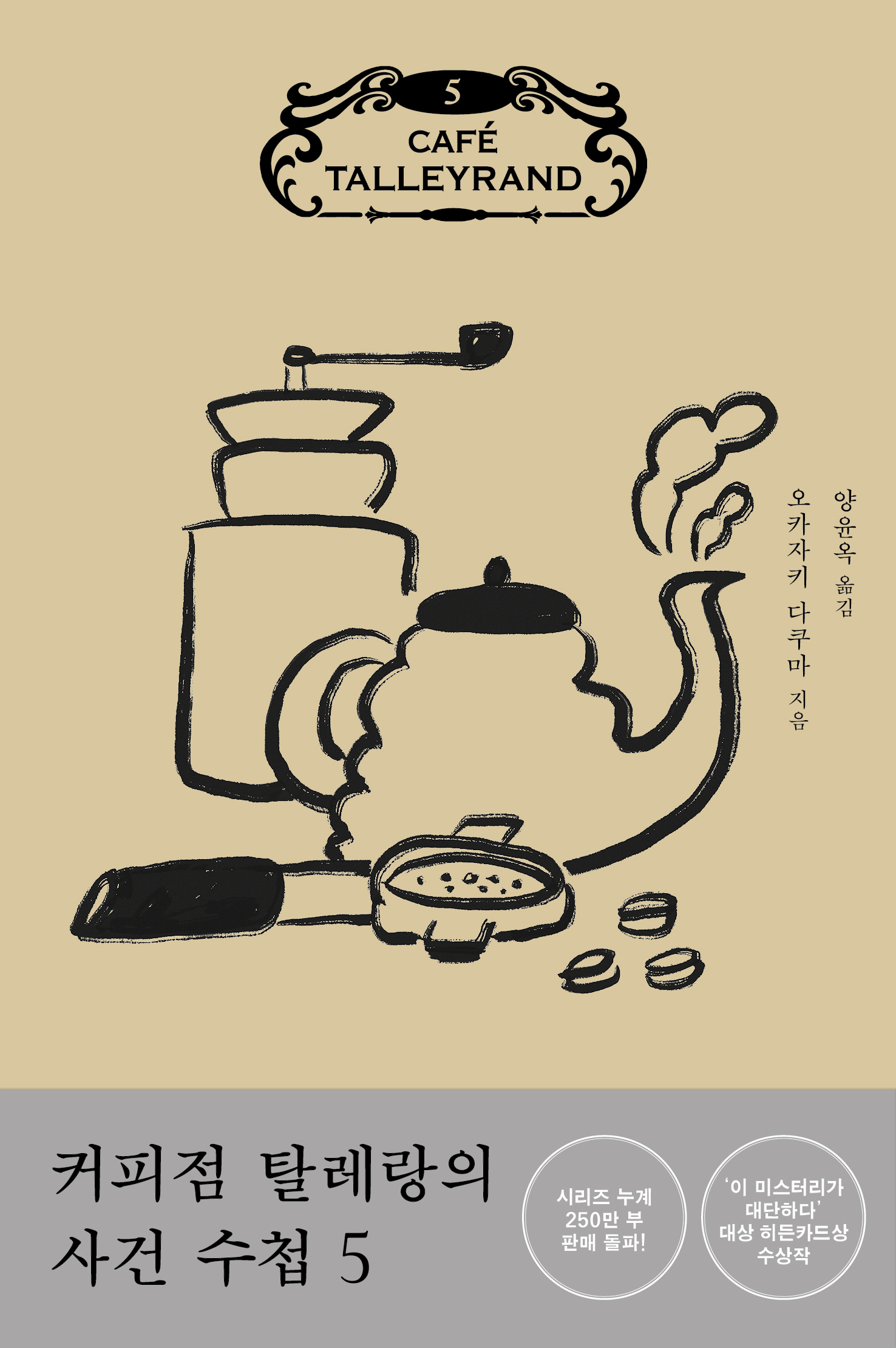 ‘커피점 탈레랑의 사건 수첩’ 시리즈의 무대는 교토의 고풍스러운 ‘커피점 탈레랑’이다. 커피를 사랑하는 청년 아오야마와, 우아하고 총명한 바리스타 미호시가 손님들의 일상에 숨어 있는 수수께끼를 유쾌하게 해결해 나간다. 일본 헤이안 시대의 고전문학을 주요 소재로 삼은 5권에서는 이혼과 불륜, 죽음과 이별 등 앞 권에 비해 다소 무거운 이야기를 다룬다. 아오야마가 11년 만에 만난 첫사랑 마코의 사연을 둘러싼 수수께끼는 각 장 끝에 등장하는 의문의 편지로 더 복잡한 미궁으로 빠지고, 미호시와 아오야마는 여느 때처럼 담담하게 사건을 해결한다. 단순하지 않은 전개 방식, 단발성 캐릭터에게도 부여되는 풍부한 서사는 마침내 사랑의 소중함이라는 가장 중요한 메시지로 귀결된다. 달콤하고 시원한 원앙차가 그 메시지 전달에 확실한 매개체가 되어준다.