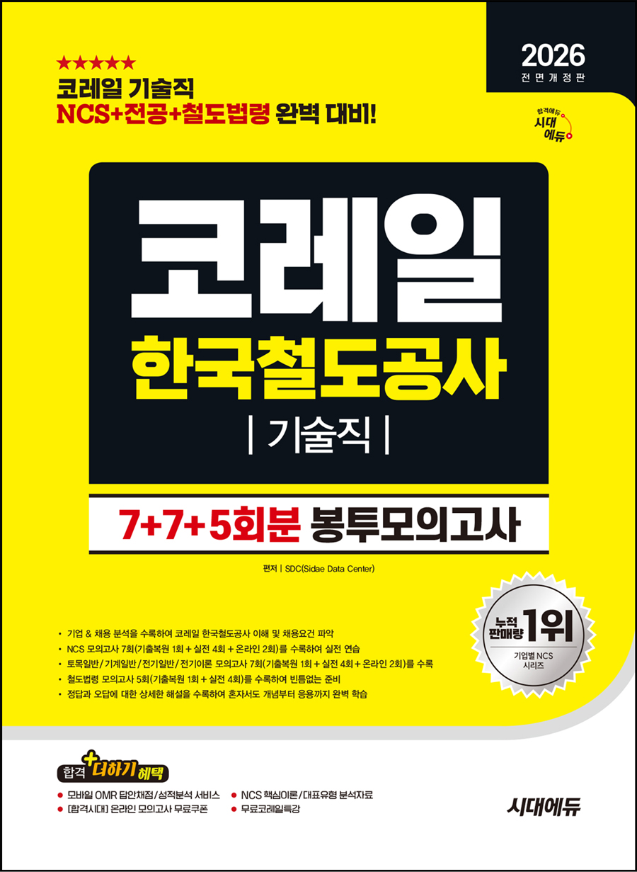 2026 시대에듀 All-New 코레일 한국철도공사 기술직 NCS+전공+철도법령 봉투모의고사 7+7+5회분
