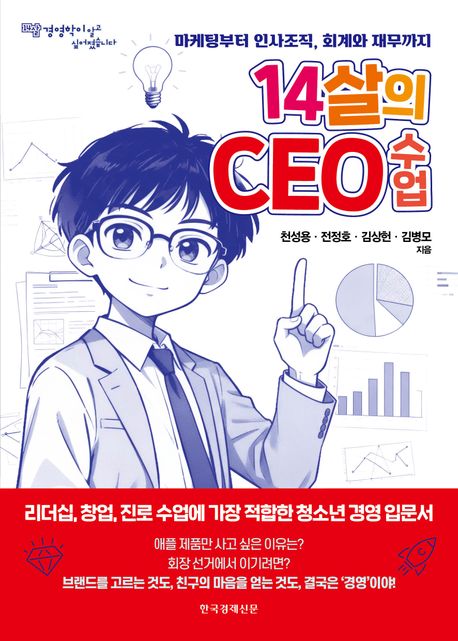 《14살의 CEO 수업》은 중학생이 세상을 더 넓게 보고, 스스로의 인생을 ‘경영하는 힘’을 갖도록 돕는 첫 번째 안내서다. 이 책을 통해 14살 중학생도 선택의 기준을 세우는 법, 사람의 마음을 이해하는 법, 돈과 시간의 가치를 판단하는 법 등을 마케팅, 인사조직, 회계, 재무라는 경영의 개념을 통해 배우게 된다.