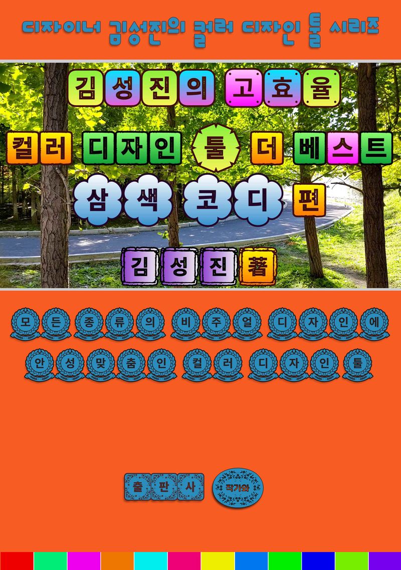 웹페이지 배경색 디자인만이 아닌, 북 디자인, 배너 광고 디자인, 라이트 박스 디자인, 홍보물 디자인, 동영상 자막 디자인 등 텍스트(카피라이트 등을 포함한 문자)가 들어가는 모든 시각 디자인에 두루 공존하는 눈 피로 유발 문제점들이고 해당 문제점들의 해결책으로 두루 적용되는 컬러 디자인 툴이어서 도서명을 최종으로 상기와 같이 정하게 되었습니다.