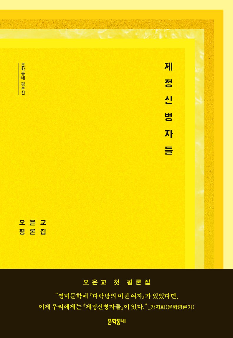 오은교의 날카로운 펜 끝은 텍스트뿐 아니라 자기 자신까지 겨누고 있기에, 그 어떤 비평에서도 발견할 수 없는 진솔한 대면-대화의 자리를 만들어낸다. ‘제정신병자들’이라는 제목 역시 그러한 맥락과 차원에서 지어졌다. 자신의 처지를 자조(自嘲)하는 데서 시작해 자기를 되돌아보는 자조(自照)로, 그리하여 자기 자신을 축조하는 기예로서의 자조(自造)로 발돋움하는 일. 이는 수치심이 곧 자부심이 되는 시대정신의 표상이자 그 자체로 문학의 요체를 지시하는 단어이기도 하다. “신기 오른 무당이 줄줄이 떠오르”게 하는 오은교만의 독보적인 감각으로 읽어낸 한국문학은 저자와 독자의 “난잡한 욕망을 읽어내면서도 그 뒤틀림이 세상의 규범과 정상성의 형식을 어떻게 찌르고 틈새를 내는지 정확하게 짚어내기에”(강지희) 야무지게 화끈하다. 이 거침없는 첫 책을 ‘정신없이’, “모쪼록 재미있게 읽어주시길 바란다”(‘책머리에’).