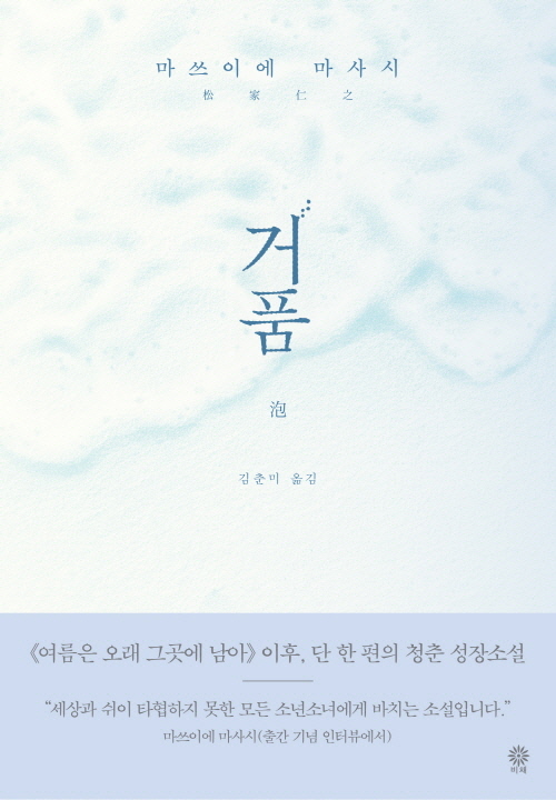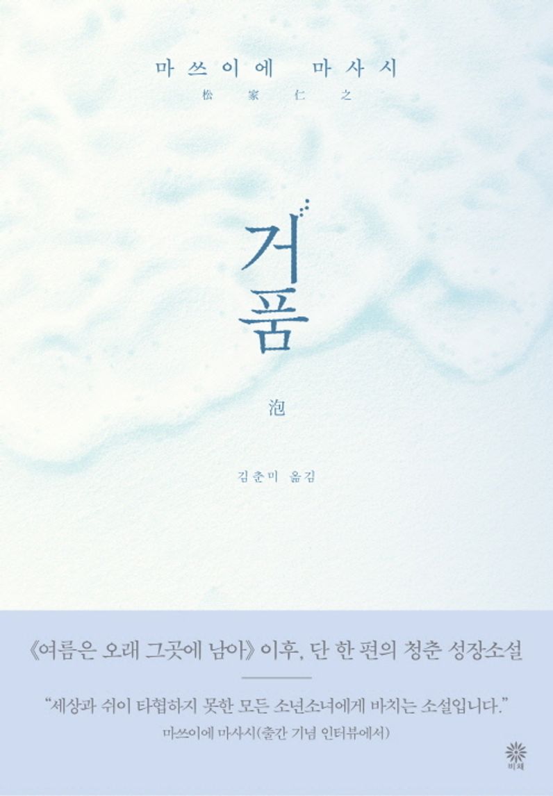 《거품》은 성장과 구원의 드라마를 과장하지 않는다. 대신, 아무 일도 일어나지 않는 것처럼 보이는 시간 속에서 한 인간이 스스로 회복해가는 과정을 정밀한 언어로 포착한다. 이 소설에서 여름은 질풍과 노도의 계절인 동시에 통과의례이자 유예의 시간이다. 소년을 단련하거나 완성시키기보다, 다시 숨을 고를 수 있도록 조용히 곁에 머물러주는 듯하다. 장년의 ‘가네사다’, 청년 ‘오카다’ 그리고 열여덟의 ‘가오루’, 세대를 달리하는 세 인물이 유지하는 절제된 거리감과 조용한 연대는 마쓰이에 마사시 특유의 온후한 세계를 그려내며 독자를 깊이 끌어들인다. 《거품》은 작가의 말처럼 세상과 쉽게 타협하지 못했던 모든 이를 위한 가장 조용하고 다정한 청춘 성장소설이다.