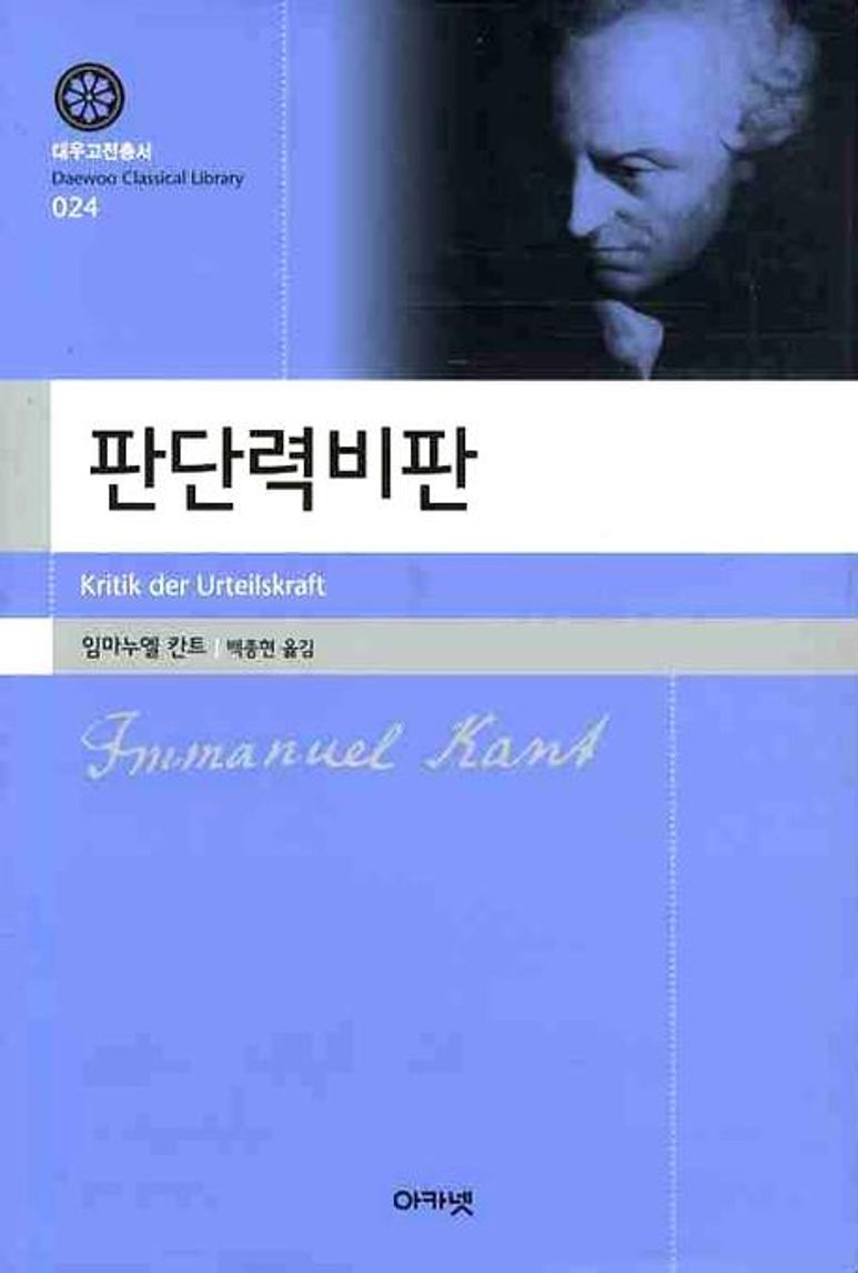 칸트의 제3비판서인 『판단력비판』(대우고전총서 24권)이 아카넷에서 완역, 출간되었다. 이 책은 『순수이성비판』, 『실천이성비판』과 함께 칸트 철학을 대표하는 3비판서 중 하나이다. 번역은 40년에 걸쳐 칸트 철학 연구에 매진하면서, 『실천이성비판』(2002년), 『순수이성비판』(2006년)을 이미 번역하고, 주해한 바 있는 서울대학교 철학과 백종현 교수가 맡았다. 이번에 『판단력비판』 번역 및 주해 작업을 함으로써, 백종현 교수는 2500쪽에 달하는 칸트 3비판서 번역과 주해 작업을 모두 마쳤다.