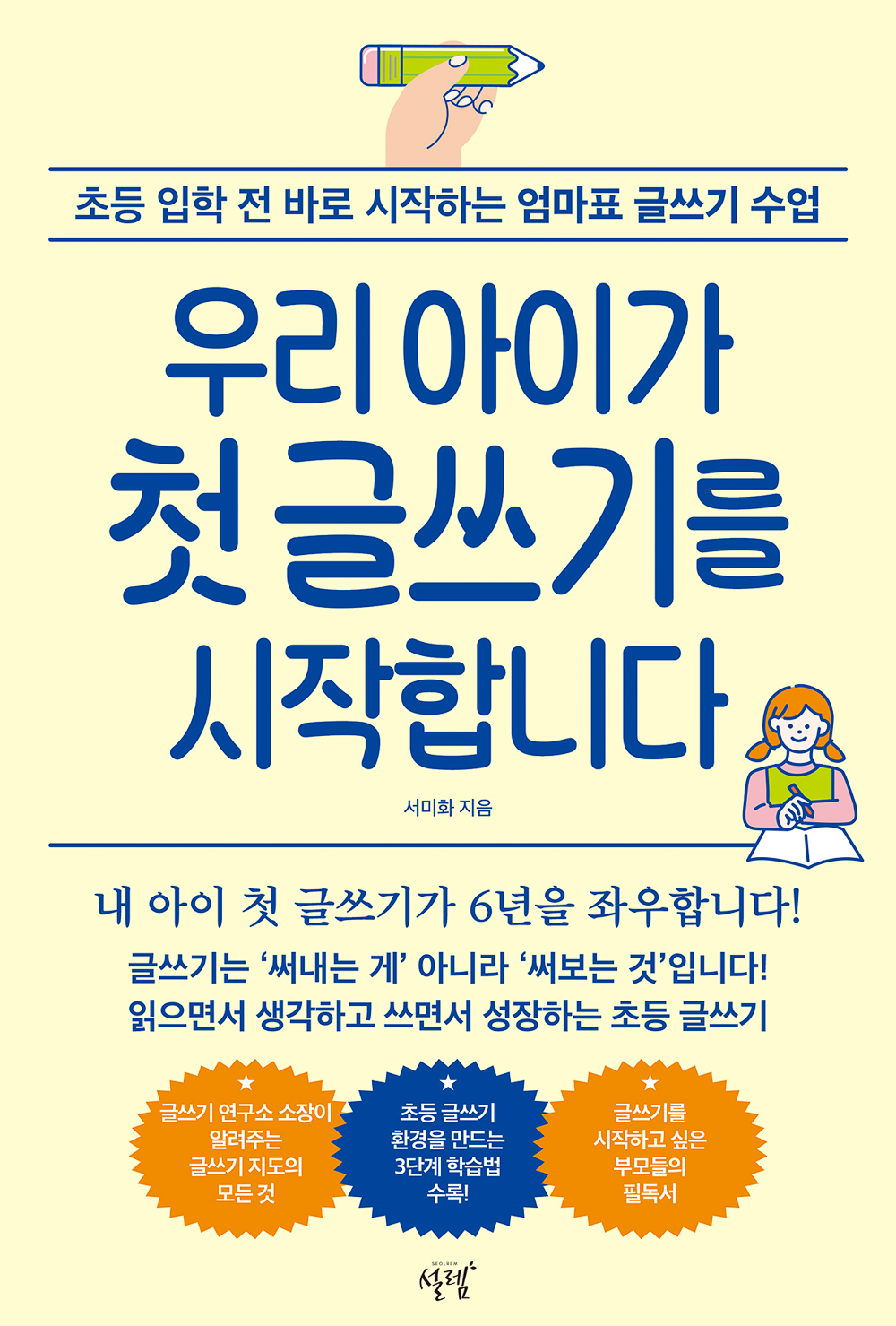 글쓰기는 단지 ‘써내는 것’이 아니라 ‘써보고 배워가는 과정’입니다. 우리 아이가 글은 단순히 ‘써내야 하는 것’이 아닌 ‘써가며 알아가는 과정’임을 경험했으면 좋겠습니다. 글쓰기가 필요하지 않은 초등학생은 없습니다. 이 책이 책장 한가운데 꽂혀, 늘 펼쳐 보며 든든한 선생님이 되어 주길 바라봅니다"