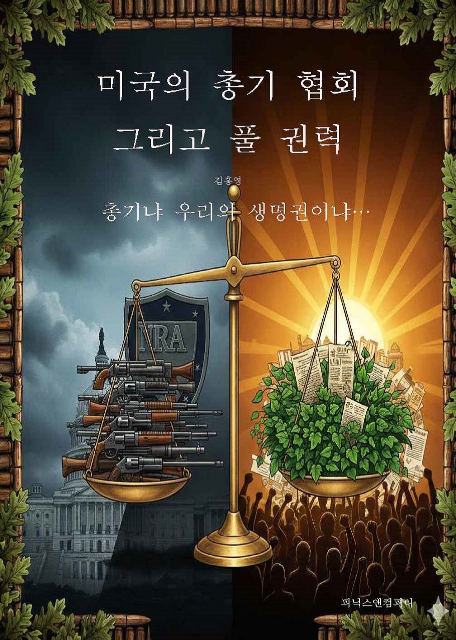 김홍영의 『미국의 총기 협회 그리고 풀 권력』 은 미국 사회를 찢어놓는 총기 논쟁의 심장부를 관통한다. 그리고 미국의 역사적 뿌리와 이념적 배경, 그리고 권력의 역학 관계를 깊이 있게 파고든다. 이 책은 순수했던 사격 교육 단체 NRA가 '신시내티 혁명'을 거쳐 정치의 전면에 나서면서 '총은 자유의 마지막 보루'라는 이념을 어떻게 구축하고 강화해 왔는지 그 변천사를 치밀하게 추적한다. 작가는 NRA의 막강한 정치 로비력(정치인 등급 평가, 전략적 자금 투입), 2천만 회원의 '깨어난 거인' 같은 조직력, 그리고 수정헌법 제2조를 '개인의 총기 소유권'으로 재해석하여 헌법적 기반을 다진 전략이 어떻게 미국 의회를 무력화시키고 총기 규제 시도를 좌절시켰는지 명확히 해명한다.