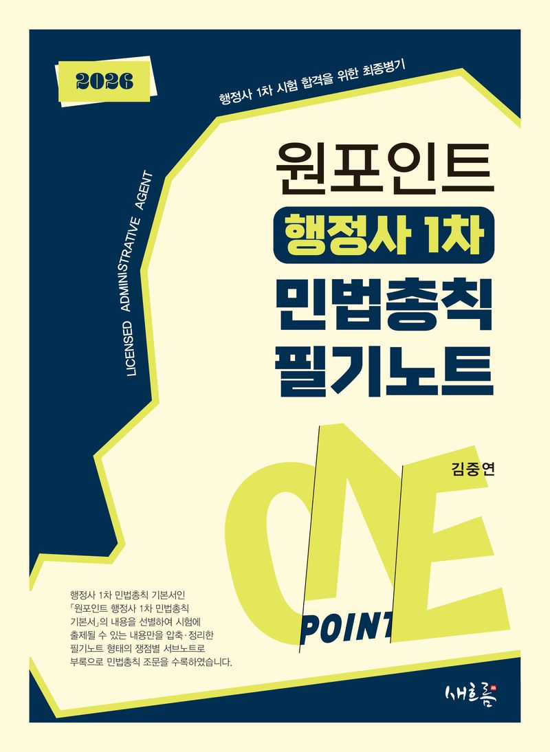 본서와 「원포인트 행정사 1차 민법총칙 기본서」를 함께 학습한다면, 그 시너지는 더욱 극대화될 수 있을 것입니다. 부디 본서를 통해 합격이라는 열매를 꼭 이루시기 바랍니다. 마지막으로 「원포인트 행정사 1차 민법총칙 필기노트」가 출간되기까지 많은 도움을 주신 도서출판 새흐름 이종은 대표님, 정대의 부장님, 그리고 직원분들께 감사의 인사를 드립니다.