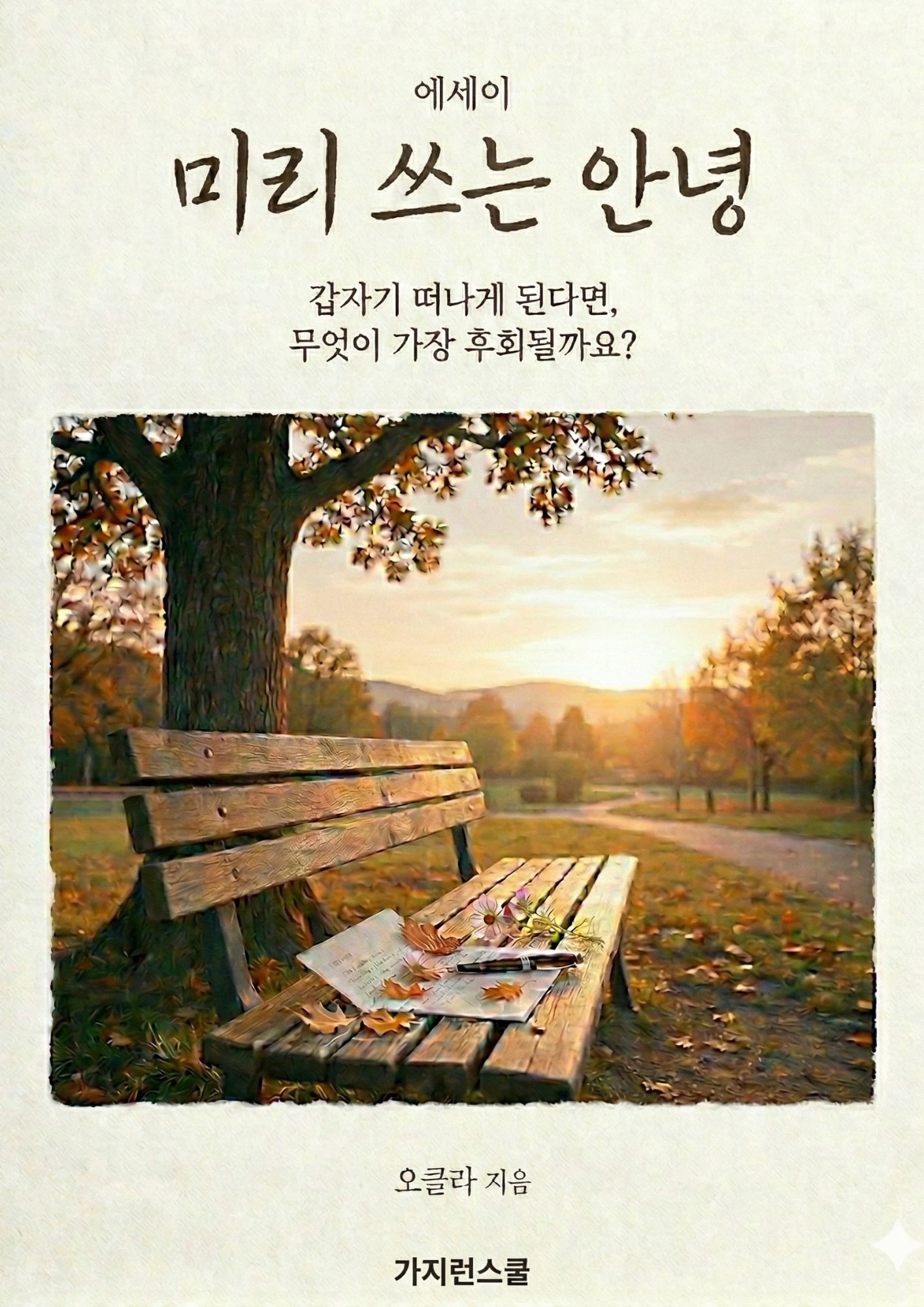 나이 듦은 낡아가는 것이 아니라, 나다운 모습으로 깊게 여무는 과정이라고 믿습니다. 다가올 내 인생의 가을과 겨울을 평온하게 맞이하기 위해, 저의 치열했던 삶을 돌아보며 《미리 쓰는 안녕》을 펴냈습니다.