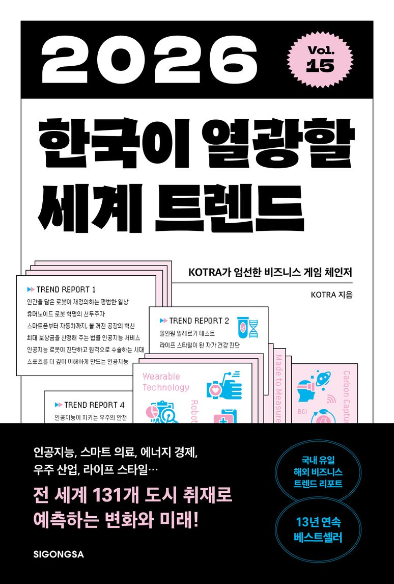 코트라가 시공사와 출간하는 ‘한국이 열광할 세계 트렌드 시리즈’는 올해로 15주년을 맞는다. 이번 보고서는 AI·헬스케어·에너지·우주·라이프 스타일을 핵심 키워드 삼아 30개의 글로벌 혁신 사례를 제시한다.