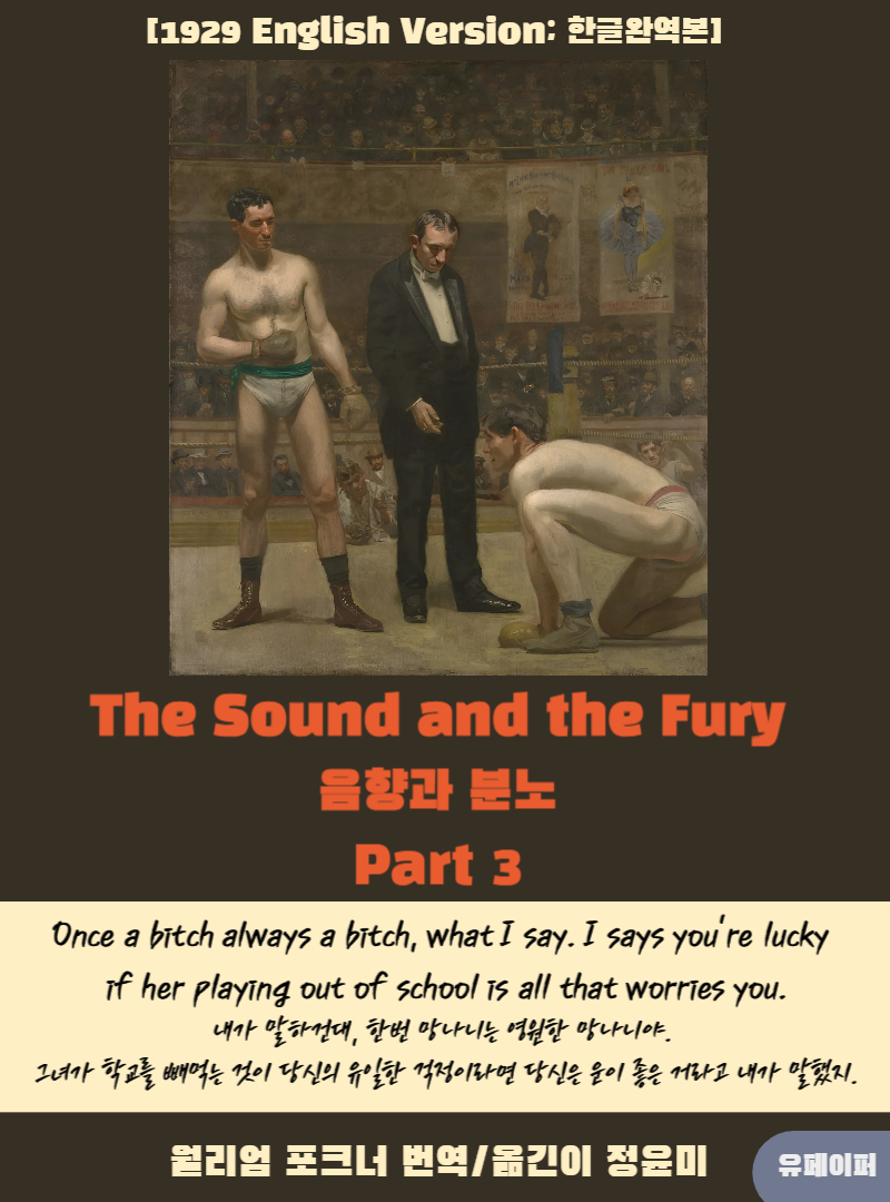 『The Sound and the Fury: Part 3』는 콤프슨 가문의 가장 현실적이고 냉정한 인물, 제이슨의 이야기를 담고 있습니다. 토머스 에이킨스의 명화 **『Taking the Count』**처럼, 이 파트는 인생을 승자와 패자로 나누는 냉혹한 세상의 단면을 보여줍니다. 이 전자책을 통해 당신은 제이슨의 세계를 경험하며 다음을 얻게 될 것입니다.