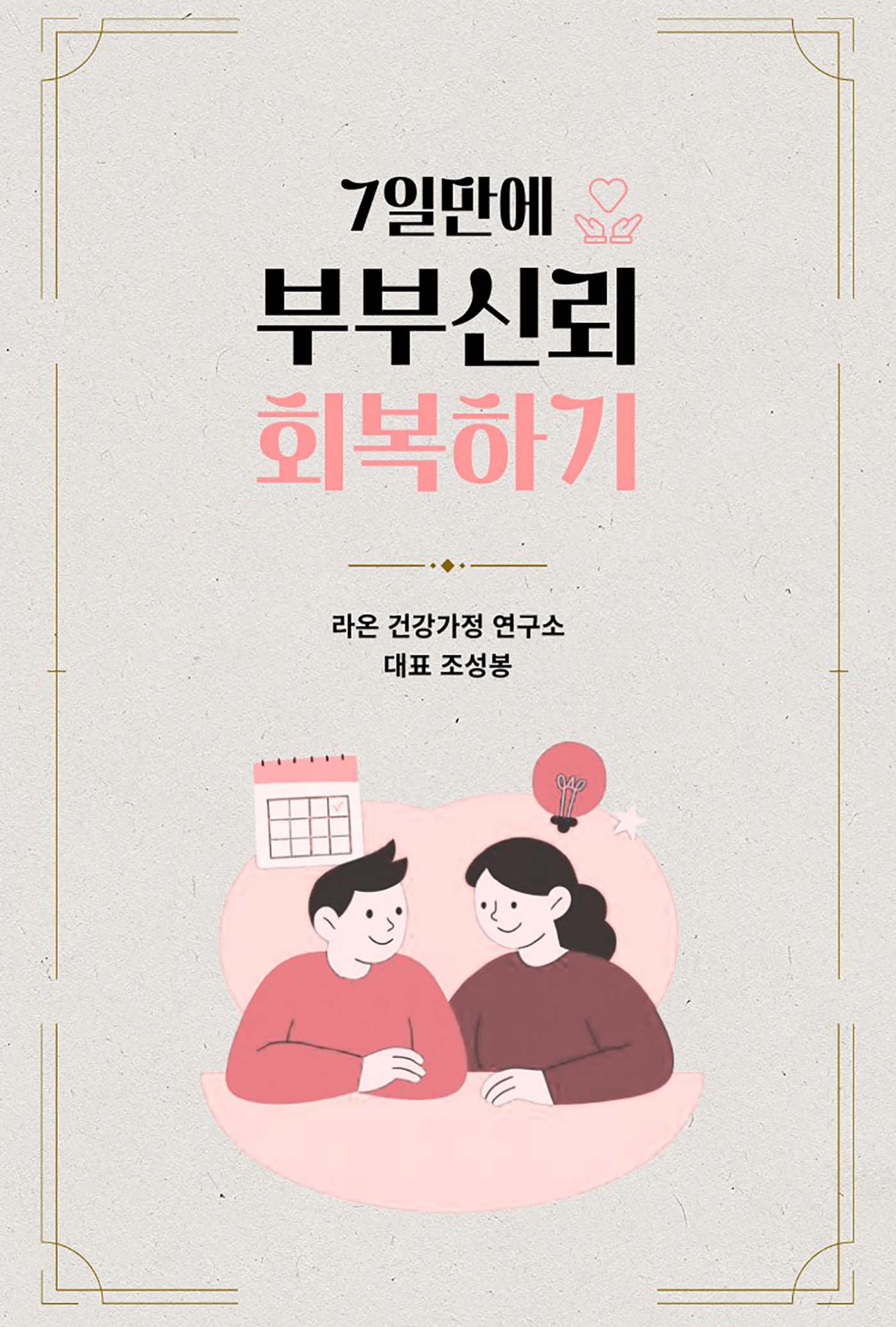 단순한 ‘정보’가 아니라, 부부가 직접 대화하고 기록하며 변화할 수 있는 워크북입니다.