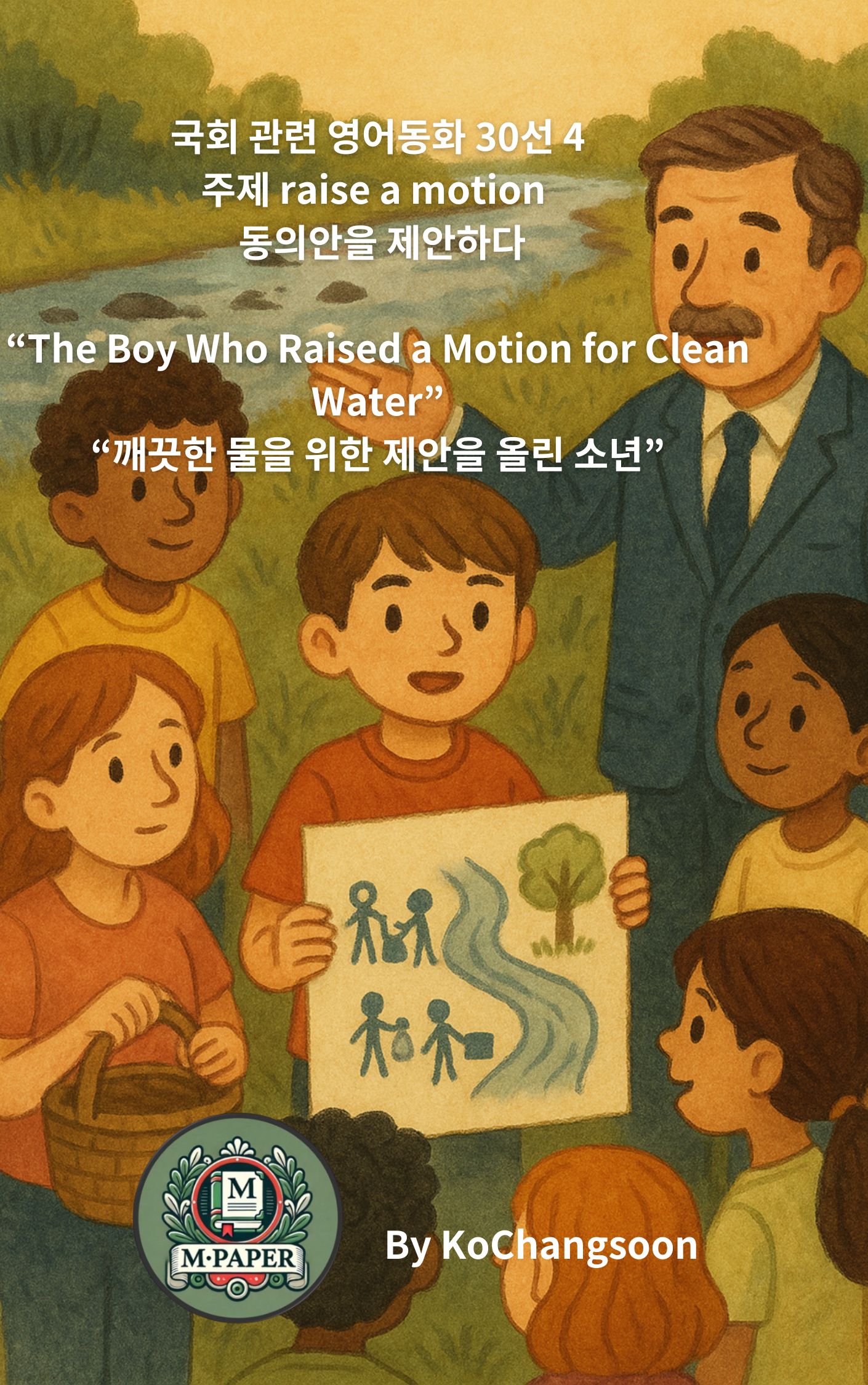 《Raise a Motion — 깨끗한 물을 위한 제안을 올린 소년》은 민주적 사고와 책임 있는 행동의 중요성을 전하는 영어동화입니다. 한 소년의 작은 제안이 공동체를 변화시키는 과정을 통해, 아이들에게 참여와 용기의 가치를 자연스럽게 깨닫게 합니다.
