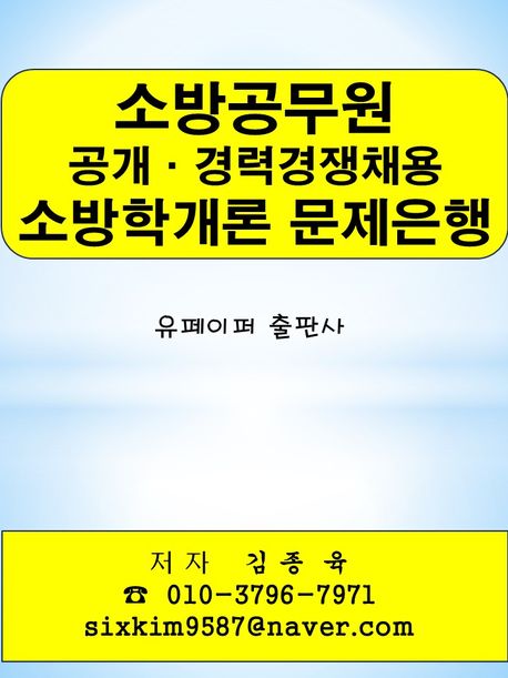 저자는 현재 개업 공인중개사로 활동 중이며, 저자가 금융기관 등에서 30여 년간 근무한 경험을 바탕으로, 다양한 분야에 대한 관심과 열정으로 저자가 업무 영역을 확장하는 과정 중에 《소방공무원 공개·경력경쟁채용 소방학개론 시험》을 준비 중인 수험생들을 위해 만든 저서입니다.