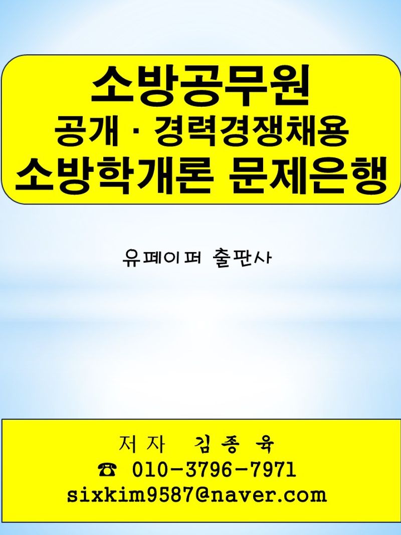 "소방공무원 공개·경력경쟁채용 소방학개론 문제은행"은 저자가 수험생 입장에서 단기간에 문제를 풀고, 합격에 도움이 될 수 있도록 구성된 문제은행식 저서입니다.