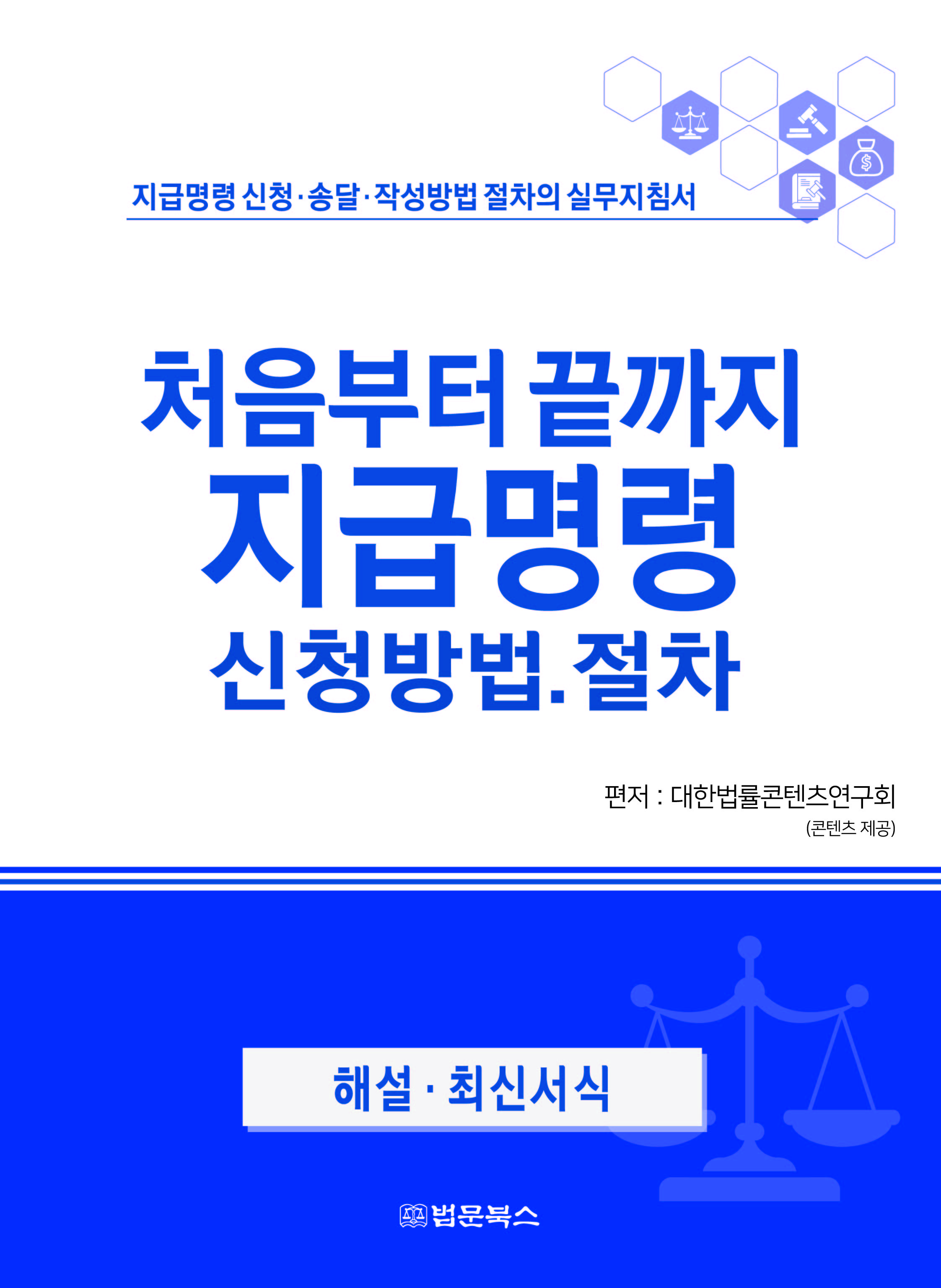 우리 법문북스에서는 누구나 쉽게 지급명령을 신청하여 집행권원(집행력 있는 지급명령)을 얻어 바로 채무자의 재산에 강제집행을 할 수 있는 지급명령신청을 변호사 없이도 혼자서 작성하여 해결할 수 있도록 하기 위해 실제 있었던 사례를 자세히 분석하고 이에 맞게 지급명령신청서를 직접 작성하는 방법을 비롯하여 지급명령이 발령되면 지급명령을 채무자에게 쉽게 송달할 수 있는 송달방법을 보다 자세히 수록한 실무 지침서를 적극 권장해 드립니다.