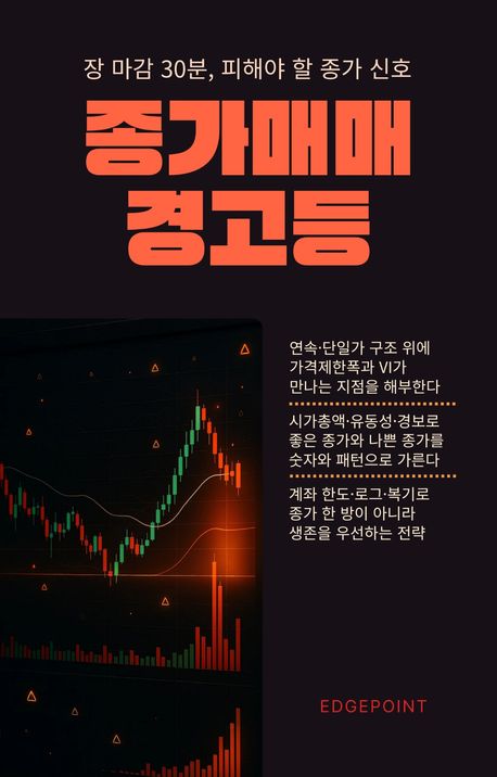 후반부에서는 계좌와 삶의 관점이 더해진다. per-trade 리스크와 종가매매 비중, 하루·월간 손실 한도와 연속 실패 중단 규칙을 숫자로 정리한 뒤, 언제는 종가매매를 줄이고 언제는 일정 기간 완전히 접어야 하는지 기준을 제시한다. 종가 포지션 때문에 잠을 못 이루고, 손실 만회를 위해 레버리지와 신용까지 손이 가기 시작하는 순간이 어떤 위험 신호인지, 종가매매를 포기하는 것이 투자를 포기하는 것이 아니라 고위험 구간에서 물러나는 선택일 수 있다는 점까지 솔직하게 짚는다. 책의 마지막 페이지를 덮을 때 독자는 종가 단일가 호가창을 보며 “얼마를 벌 수 있을까”가 아니라 “이 자리는 들어가야 할 자리인가, 피해야 할 자리인가”를 먼저 떠올리게 될 것이다.
