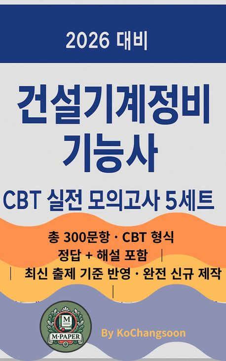 이 책은 2026년 건설기계정비기능사 시험을 대비해 만들어진 CBT 실전형 모의고사 5세트(총 300문항) 수험서입니다. 최신 출제 경향과 실무 기술을 반영하여 문제·정답·해설을 모두 완전 신규 제작했으며, 실제 시험 난이도와 동일하게 구성했습니다. 기능사 시험에 자주 나오는 핵심 개념, 정비 규정, 안전기준까지 상세 해설로 정리하여 단기간 합격을 목표로 하는 수험생에게 최적의 실전 대비 학습서를 제공합니다.