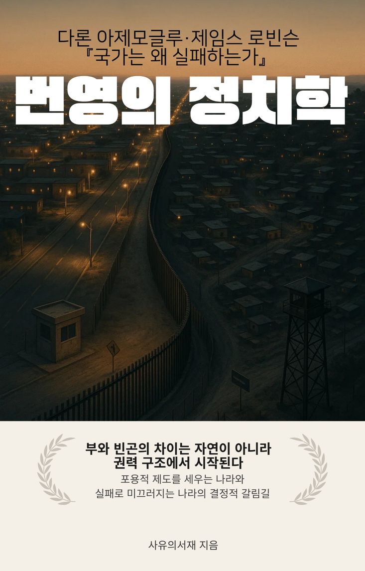 『국가는 왜 실패하는가』를 두고 이미 수많은 서평과 강의가 나와 있는데, 굳이 또 한 권의 책이 필요할까. 스마트북이 기획한 『다론 아제모글루·제임스 로빈슨 「국가는 왜 실패하는가」 번영의 정치학』은 이 물음에서 출발했다. 많은 독자가 원전을 완독하고도 머릿속에 남는 것은 노갈레스와 북·남한 정도의 인상뿐이고, 지리와 문화, 제도와 권력, 혁명과 쿠데타, 식민지와 산업혁명, 오늘의 기술과 기후위기가 어떻게 하나의 지도 위에 얽혀 있는지는 막연하게 느껴진다. 이 책은 원전의 분량과 난이도에 숨은 정치경제의 뼈대를 드러내기 위해, 포용적 제도와 착취적 제도를 중심 축으로 삼아 역사 사례와 최신 논쟁을 다시 배치한다. 흑사병이 서유럽과 동유럽을 어떻게 갈라놓았는지, 식민지 시기의 제도 선택이 왜 오늘의 번영 지도를 바꾸었는지, 중국과 동아시아 성장이 제도론의 예외인지 시험대인지, 기술과 인공지능이 민주주의와 불평등에 어떤 새로운 압력을 가하는지까지 차근차근 짚어 간다. 특히 마지막 장에서 제시하는 ‘뉴스를 읽는 제도 질문 프레임’은, 독자가 앞으로 어떤 정치·경제 뉴스를 만나더라도 누가 어떤 규칙을 만들고, 그 규칙이 누구에게 어떤 인센티브와 제약을 거는지를 스스로 물어보게 만드는 실전 도구다. 국가와 세계를 보는 시야를 넓히고 싶지만 두꺼운 전공서를 펼치기 부담스러운 독자에게, 한 권으로 제도와 번영의 정치학을 정리해 주는 이 책은 책장에서 자주 꺼내 보게 될 튼튼한 길잡이가 되어 줄 것이다.