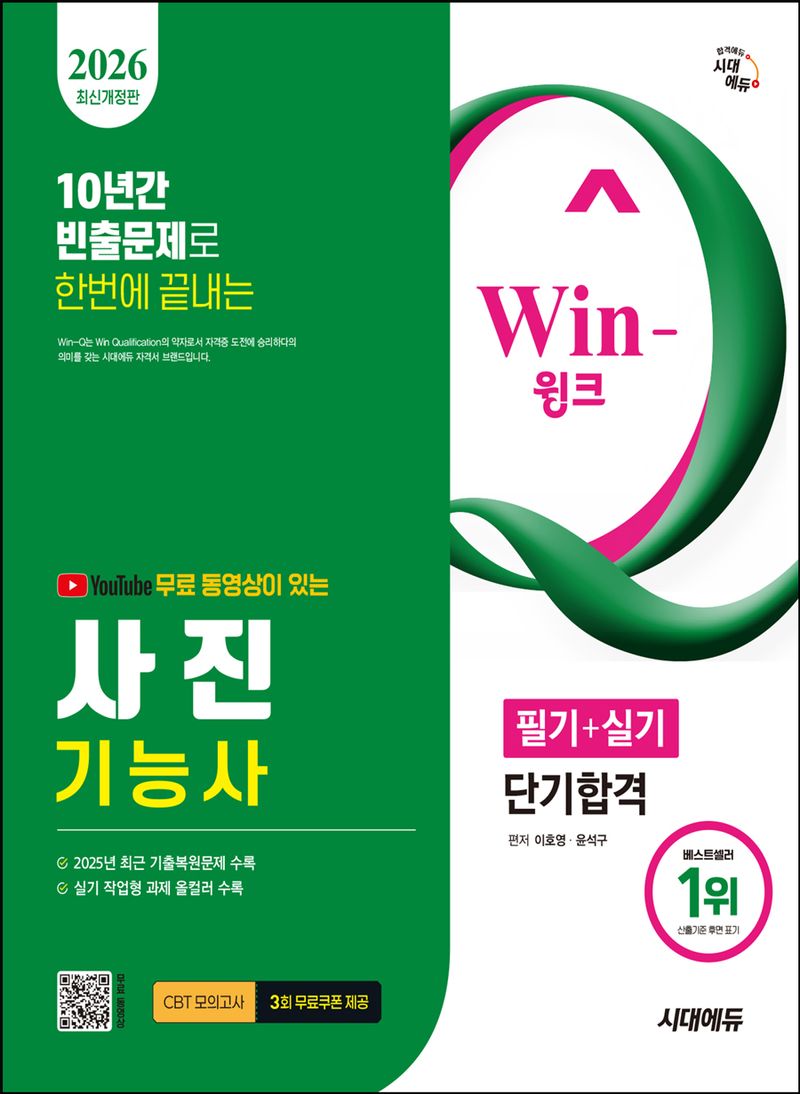 2026 시대에듀 유튜브 무료 동영상이 있는 Win-Q 사진기능사 필기+실기 단기합격