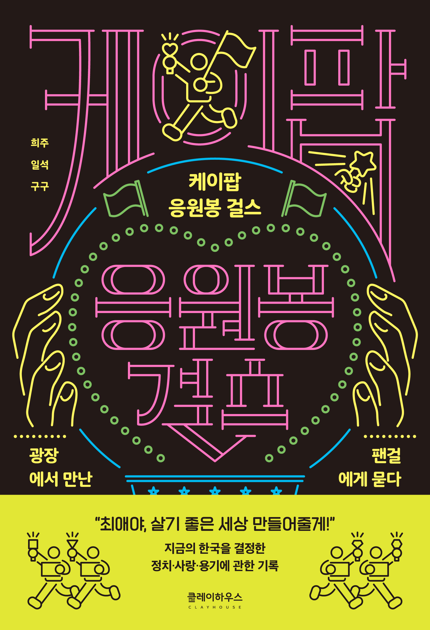 같은 시각, 오랜 케이팝 팬인 세 친구 희주, 일석, 구구 역시 시위 현장에 있었다. 희주는 평생 아이돌을 사랑해왔으며, 팬덤에 관한 이야기를 다룬 소설 『환상통』을 쓴 소설가이기도 하다. 아이돌을 향한 사랑은 그에게 중요한 주제였기에 광장에 나온 다른 응원봉 시민들의 마음이 궁금해졌고, 직접 이야기를 나눠보기로 결심한다. 이런 희주를 따라, 케이팝 관련 뉴스레터 〈편협한 이달의 케이팝〉을 발행 중이던 일석, 시민단체 활동가이자 빠순이로 살아온 구구가 더해져 세 사람은 ‘응원봉 걸스’라는 팀을 꾸린다. 응원봉 걸스는 ‘응원봉을 들고 거리에 나온 여성들’을 수소문한 끝에 만난 여섯 명의 인터뷰이(해련, 유원, 숨눈, 팝콘, 젤리, 콩알)와 케이팝·팬덤·응원봉·정치를 넘나드는 대화를 나누었고, 그 결과물을 묶어 이 책에 실었다.