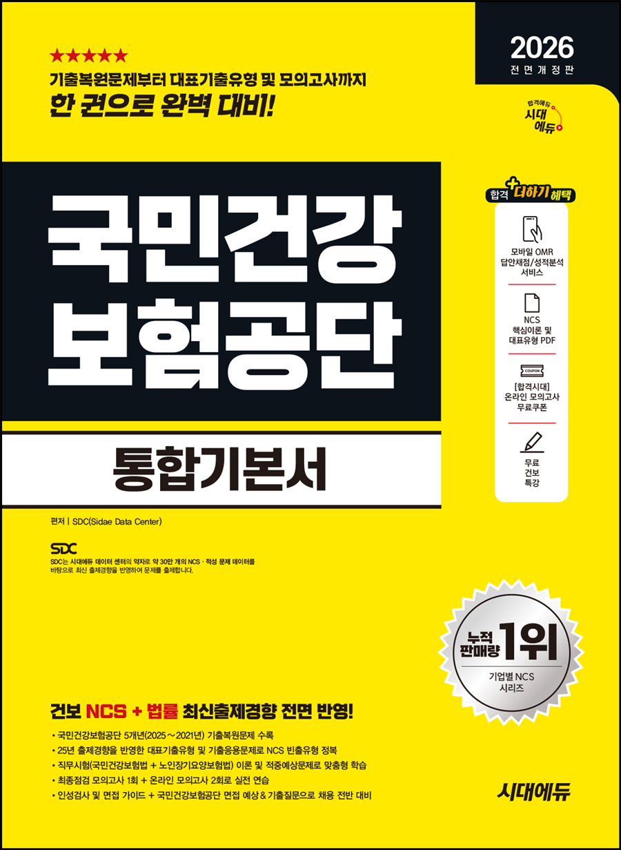 [특별혜택] 무료건보특강, NCS 핵심이론 및 대표유형 분석자료, 온라인 모의고사 무료쿠폰, 모바일 OMR 답안채점/성적분석 서비스